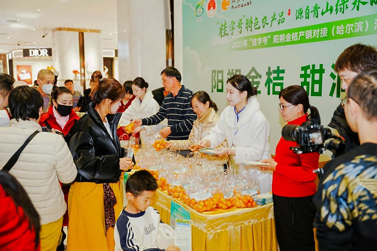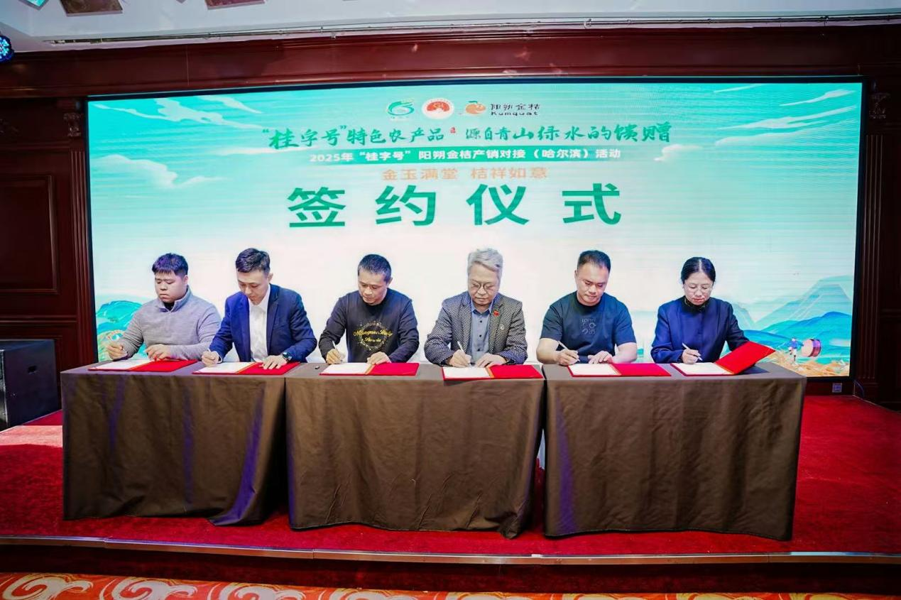 黑龙江省农业技术推广站站长沈铁恒在活动致辞时表示,阳朔金桔走进哈尔滨,既为哈尔滨带来了南方的生态馈赠,更为两地农业合作搭建了宝贵的交流平台。此次产销对接活动,是南北农业优势互补、资源共享的生动实践。一方面,哈尔滨广阔的市场空间、完善的流通网络,能够为阳朔金桔提供稳定的销售渠道,让这一优质“桂字号”产品走进更多东北家庭;另一方面,阳朔在特色农产品品牌打造、全产业链发展方面的先进经验,也值得学习借鉴,助力哈尔滨本地农产品提质升级。