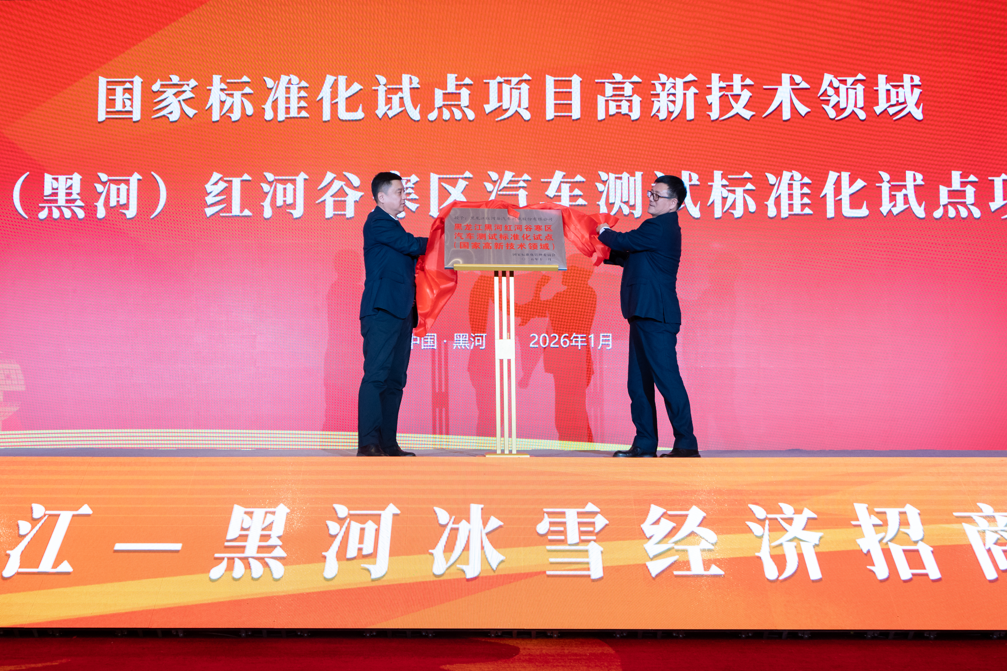推介会上,黑河市进行高寒试验产业专题推介;各县(市、区)、黑河自贸片区、市文广旅局结合各自的特色优势与投资机遇分别作了推介;黑龙江红河谷汽车测试公司分享了在黑河的发展实践。新华社中国经济信息社新华指数研究院、黑龙江省气候中心分别发布了《黑河寒区试车指数》和《寒区试车气候适宜度评价指数》,通过科学数据量化黑河极寒环境的测试适宜度与产业配套水平,明确黑河为国内最适宜开展寒区汽车性能综合试验的理想区域,为汽车企业及相关投资主体提供精准、量化的决策参考,填补了国内该领域系统性评估工具的空白,标志着黑河寒区试车产业从“经验驱动”迈向“数据引领”。与会嘉宾还共同见证了“黑河市寒区汽车测试国家标准化试点项目”揭牌。