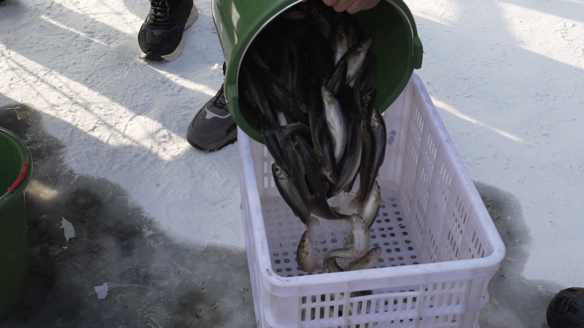 “撒网捕鱼、嘿呦嘿呦,捕得湖鲫、嘿呦嘿呦……”当渔把头一声令下,数十名渔工合力转动绞盘,千米巨网从冰下缓缓拉出,数万斤活蹦乱跳的湖鱼跃出冰面,银鳞在阳光下闪耀,游客们纷纷举起手机记录“冰河鱼跃”的壮观瞬间。本届冬捕节还融入盛世鼓、冬捕渔歌、东北民俗秧歌和舞狮等喜庆节目,古老渔猎智慧与现代艺术创意在冰湖之上碰撞火花,与渔歌、秧歌、鼓点交织成一场难忘的“冬捕欢宴”。据统计,本届冬捕节“头鱼”十余斤,鱼获量为2.8万斤。