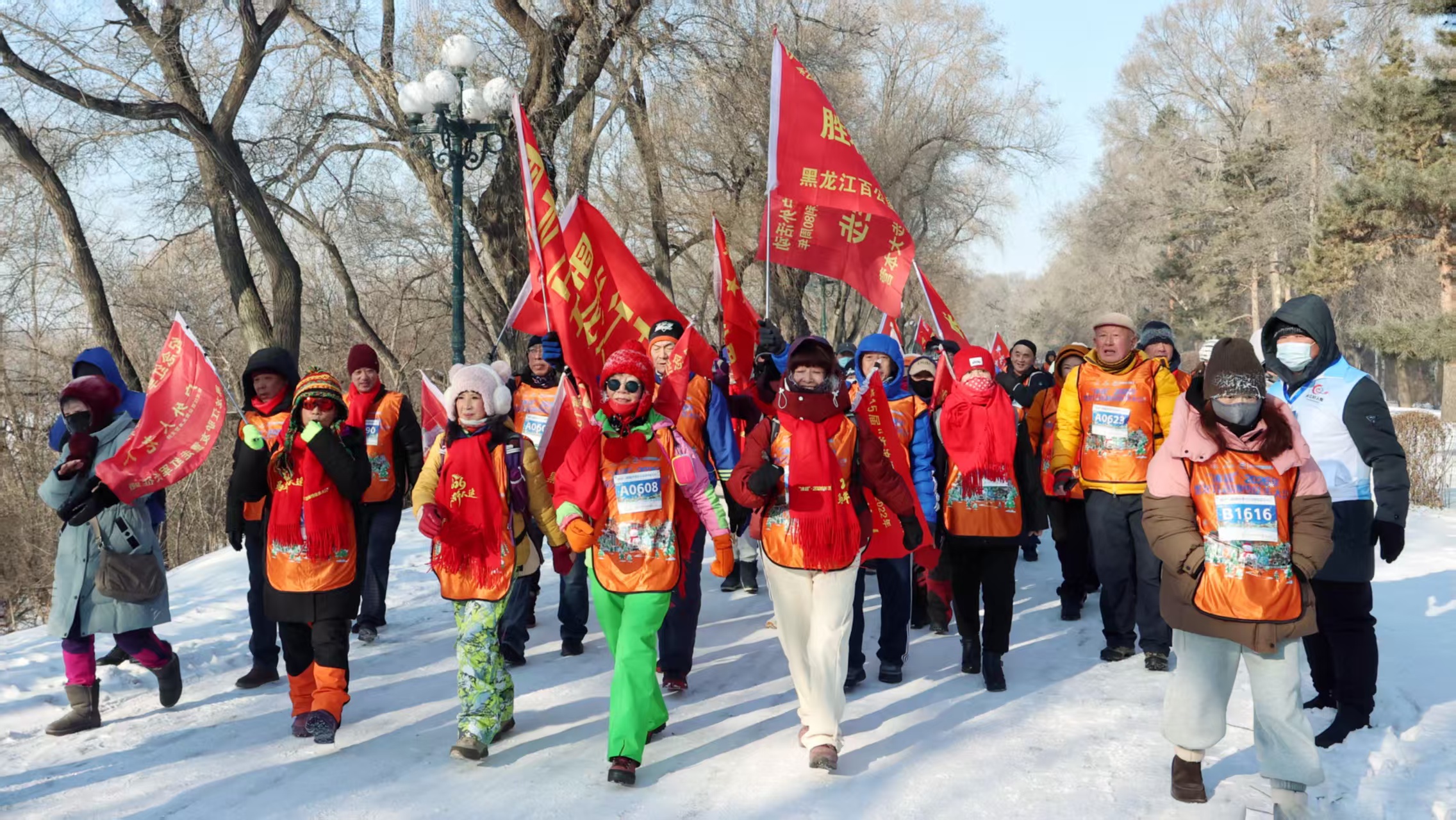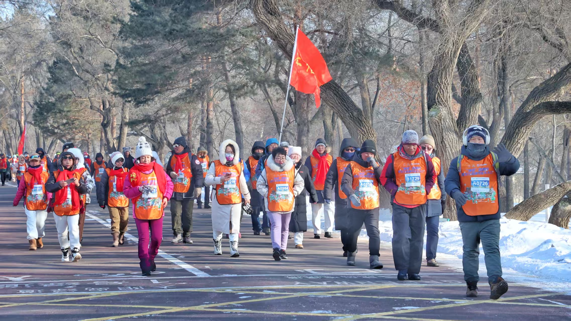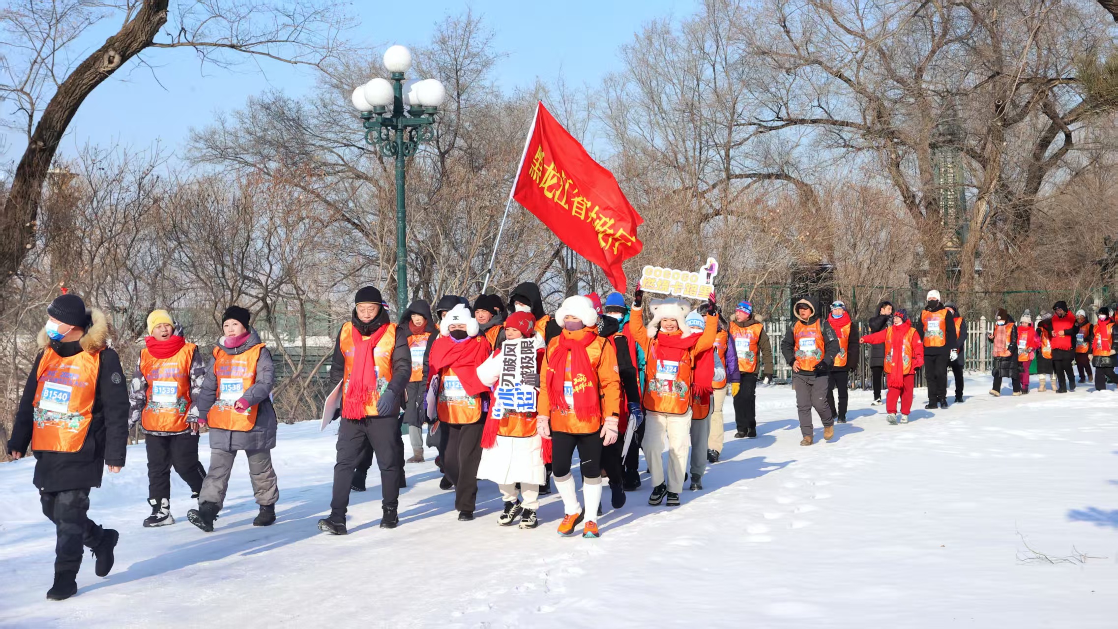 上午9时,太阳岛广场已是人声鼎沸。参与者们身着统一服装,脸上洋溢着期待与喜悦。随着发令枪响,徒步队伍如长龙般有序出发,矫健的身影穿梭在白雪覆盖的绿道上,成为冬日里一道流动的风景线。