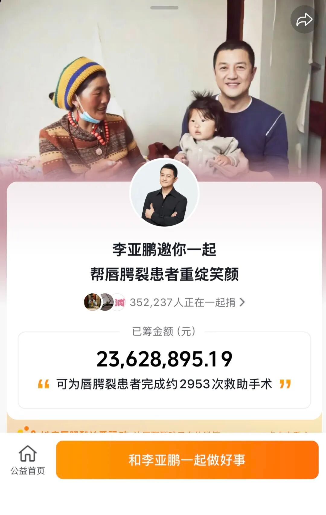 随后,医院面临关停的消息传出,引发了网友的关注,大量网友涌入嫣然天使基金捐款入口进行捐款,截至发稿,李亚鹏个人社交账号提供的捐款通道显示已收到超过35万笔捐款,总额超过2300万元。同时,有很多人表示可以将自己的房子租借给医院使用。