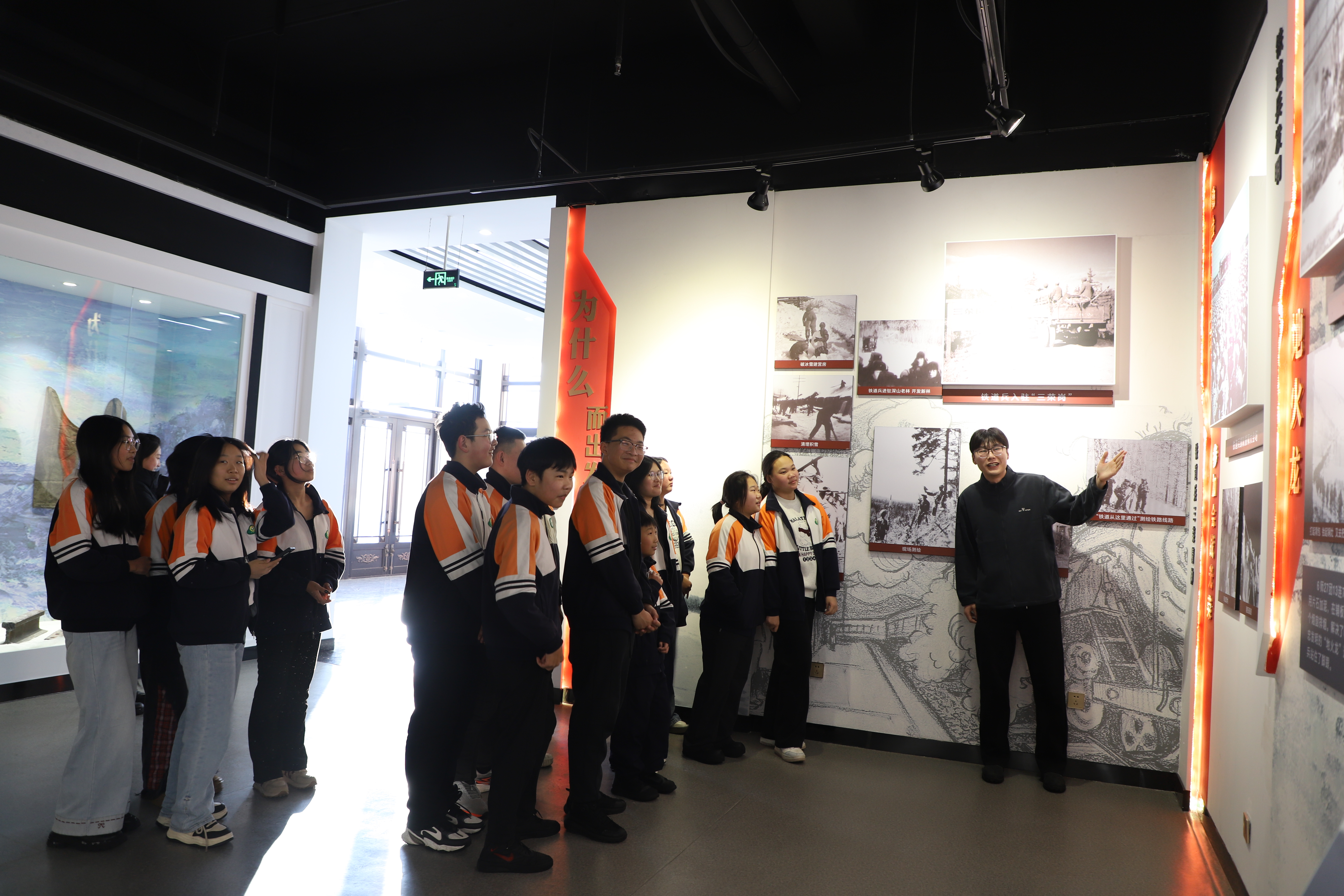 研学游的第一站大家来到承载着岁月记忆的新林开发文化博物馆,在讲解员的带领下,学生们认真聆听林区建设者们战天斗地的奋斗故事,仔细观察着每一件展品背后的时代印记。一张张泛黄的照片、一件件承载记忆的实物、一个个生动的复原场景,情景再现了新林开发建设的艰苦历程与辉煌成就。展厅里,学生们朝气蓬勃、兴致盎然,眼神中满是对知识的渴求。