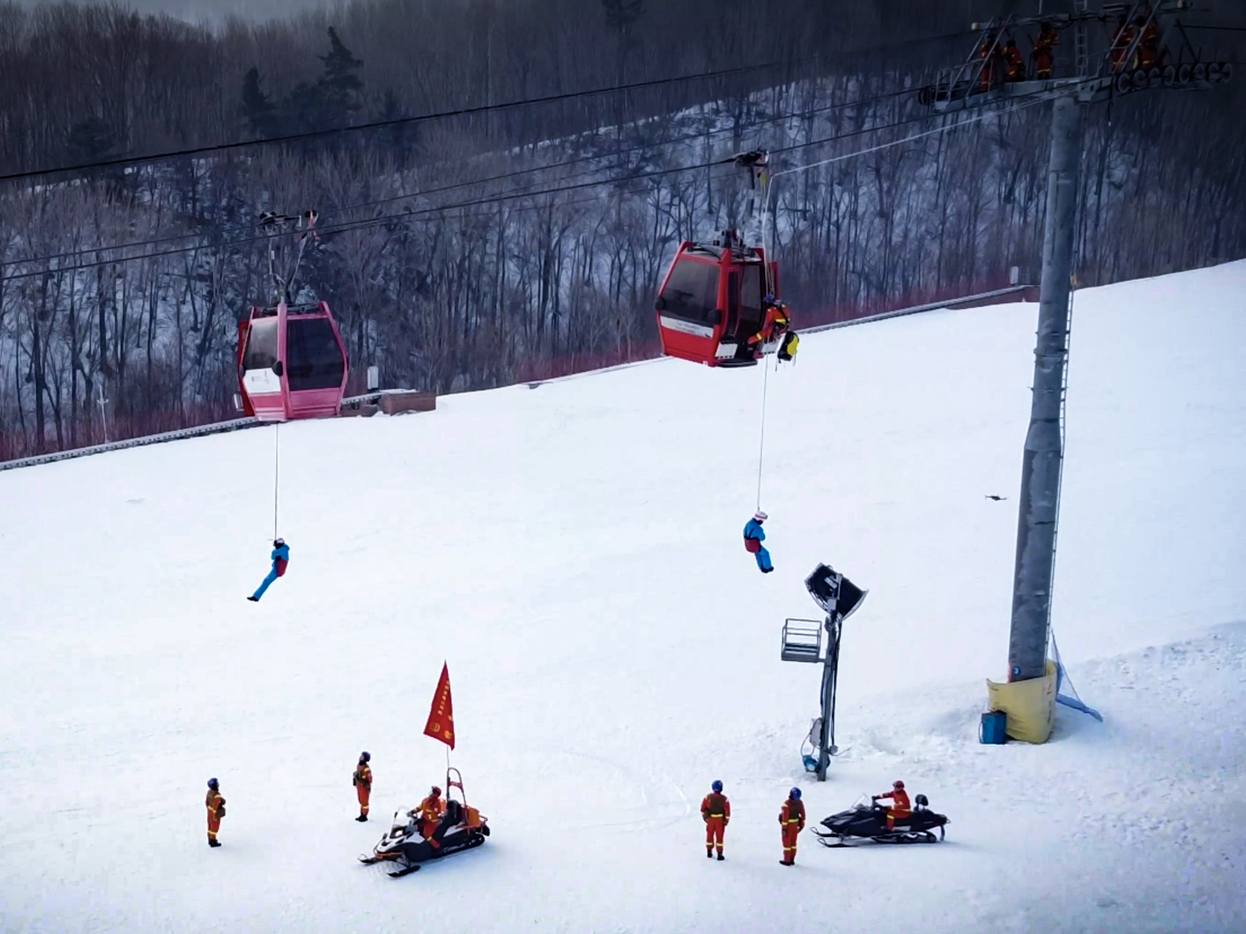 “针对亚布力国际旅游度假区游客较多且地形复杂的特点,我们前期对现场环境进行了细致勘察,并对缆车救援、下放救援、无人机搜救、高空快速攀爬等课目进行了训练,有效提升队伍应对处置突发事件的能力”,负责前置备勤任务的大队长李海巍介绍到。