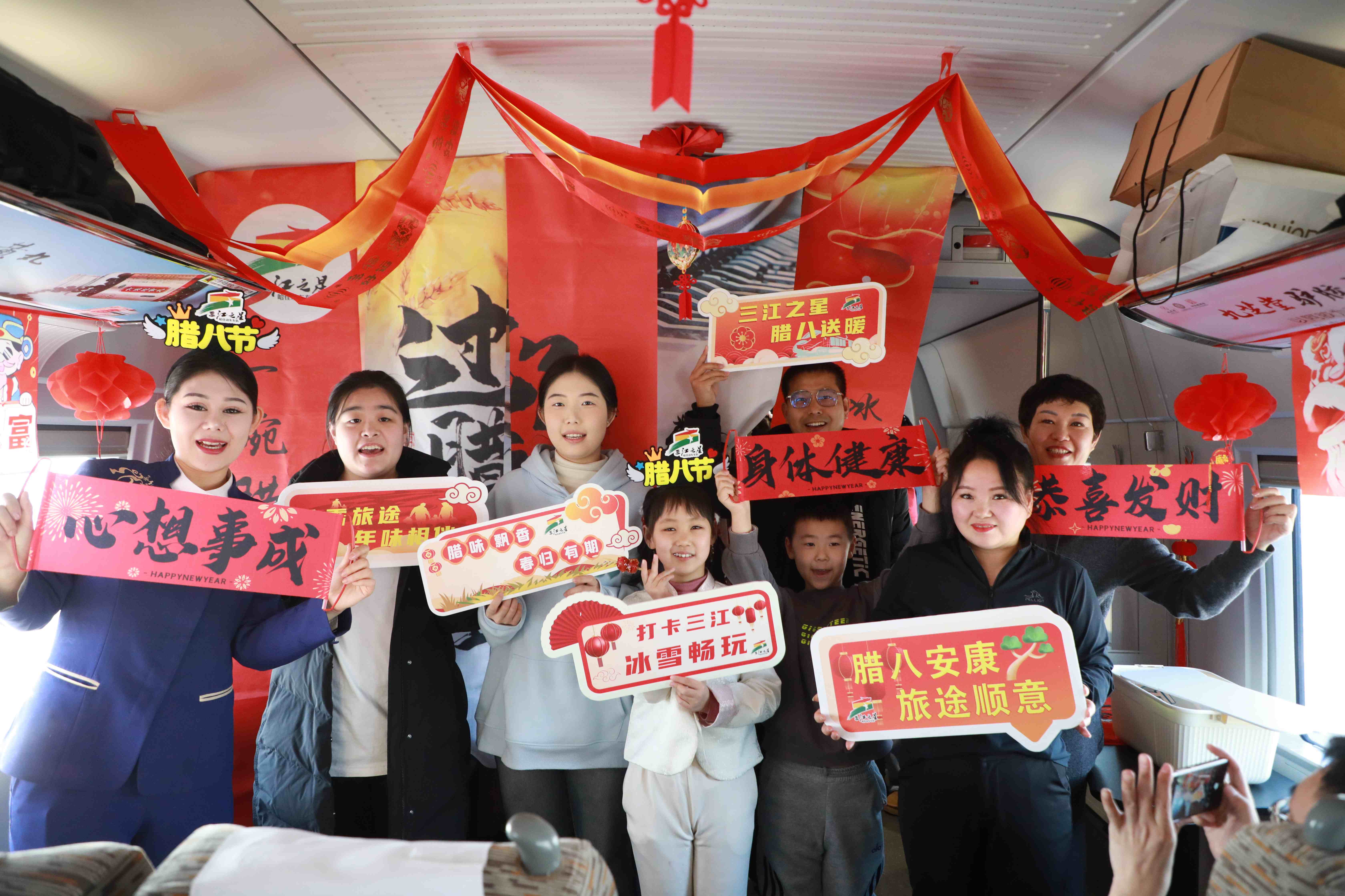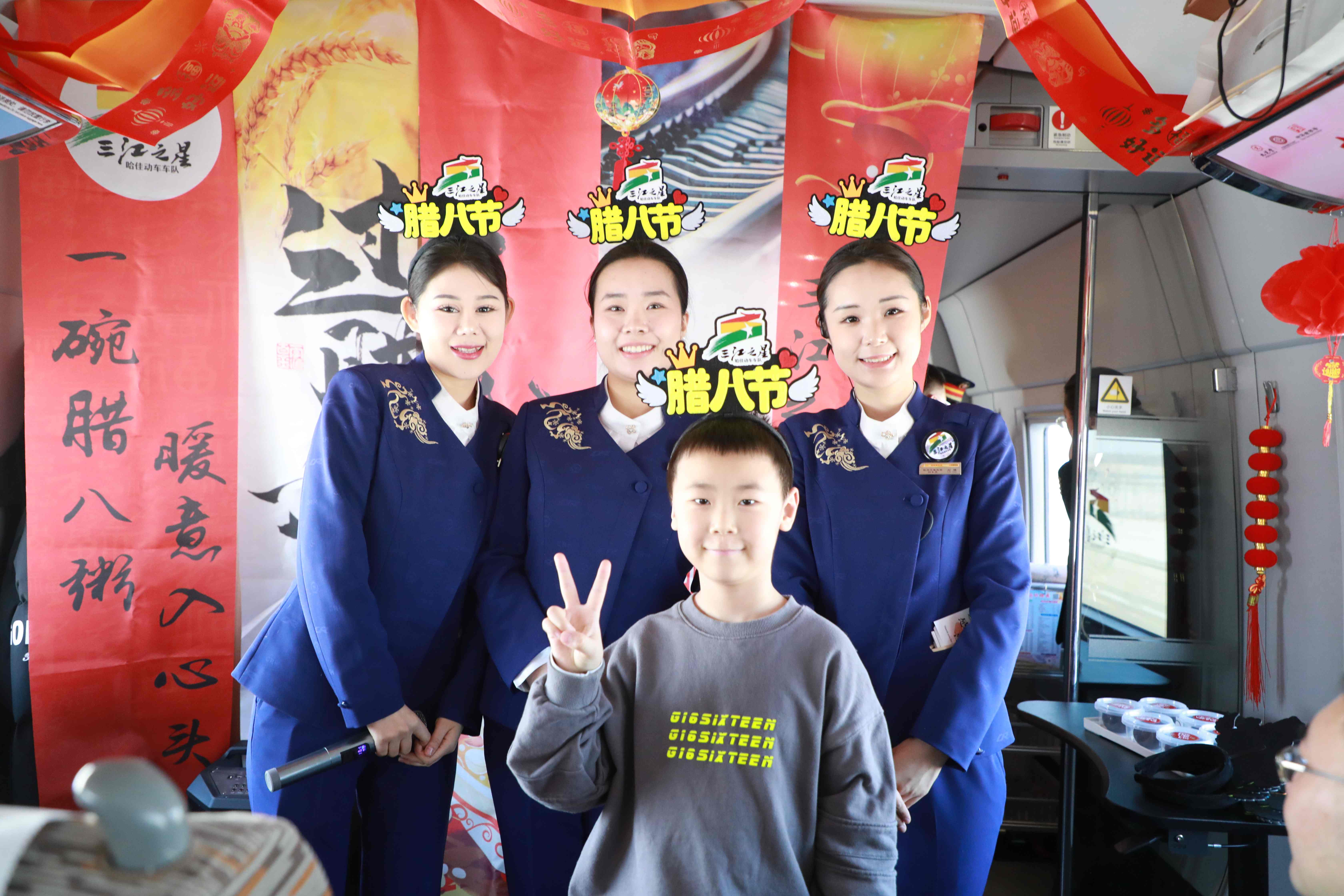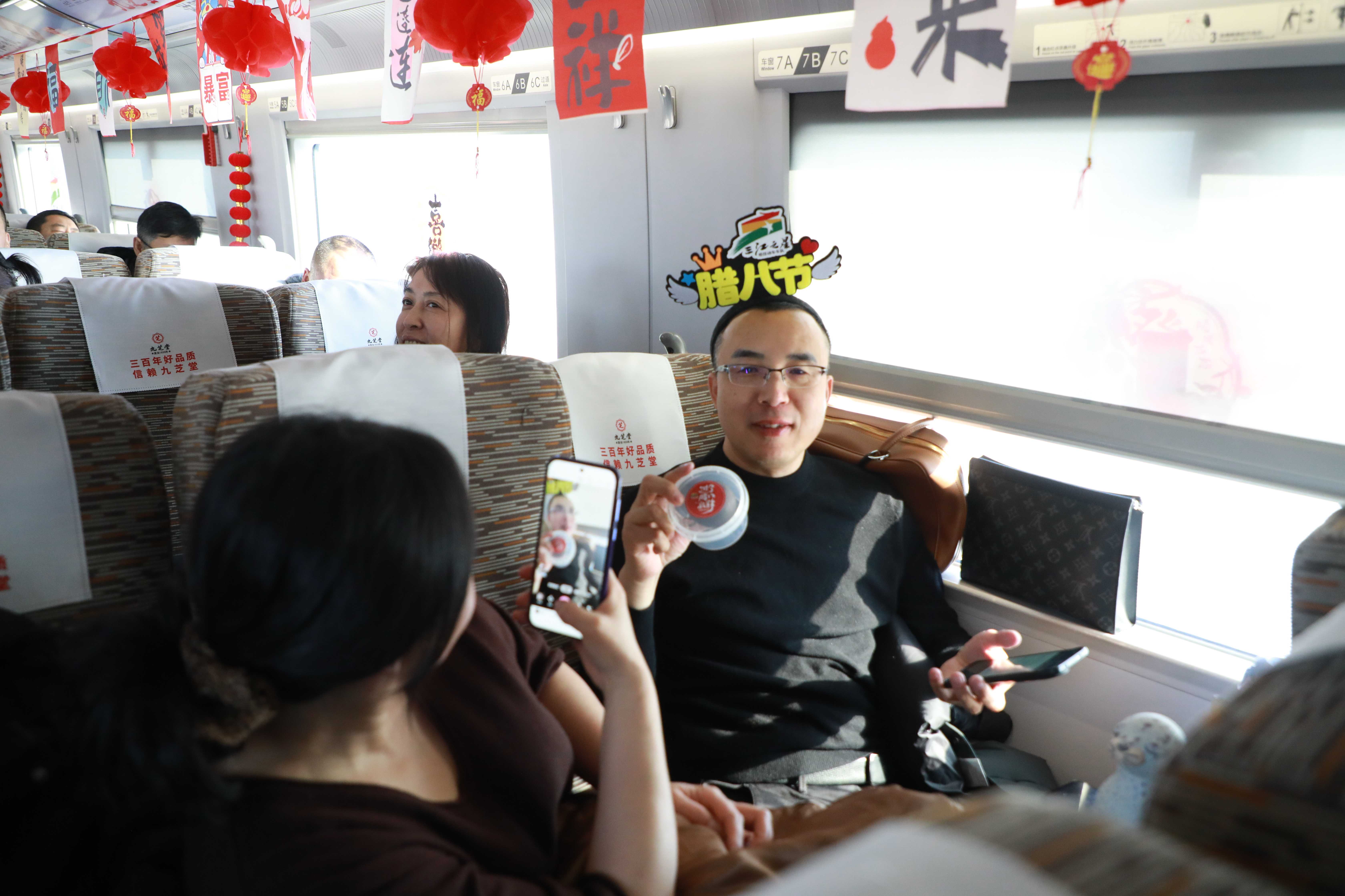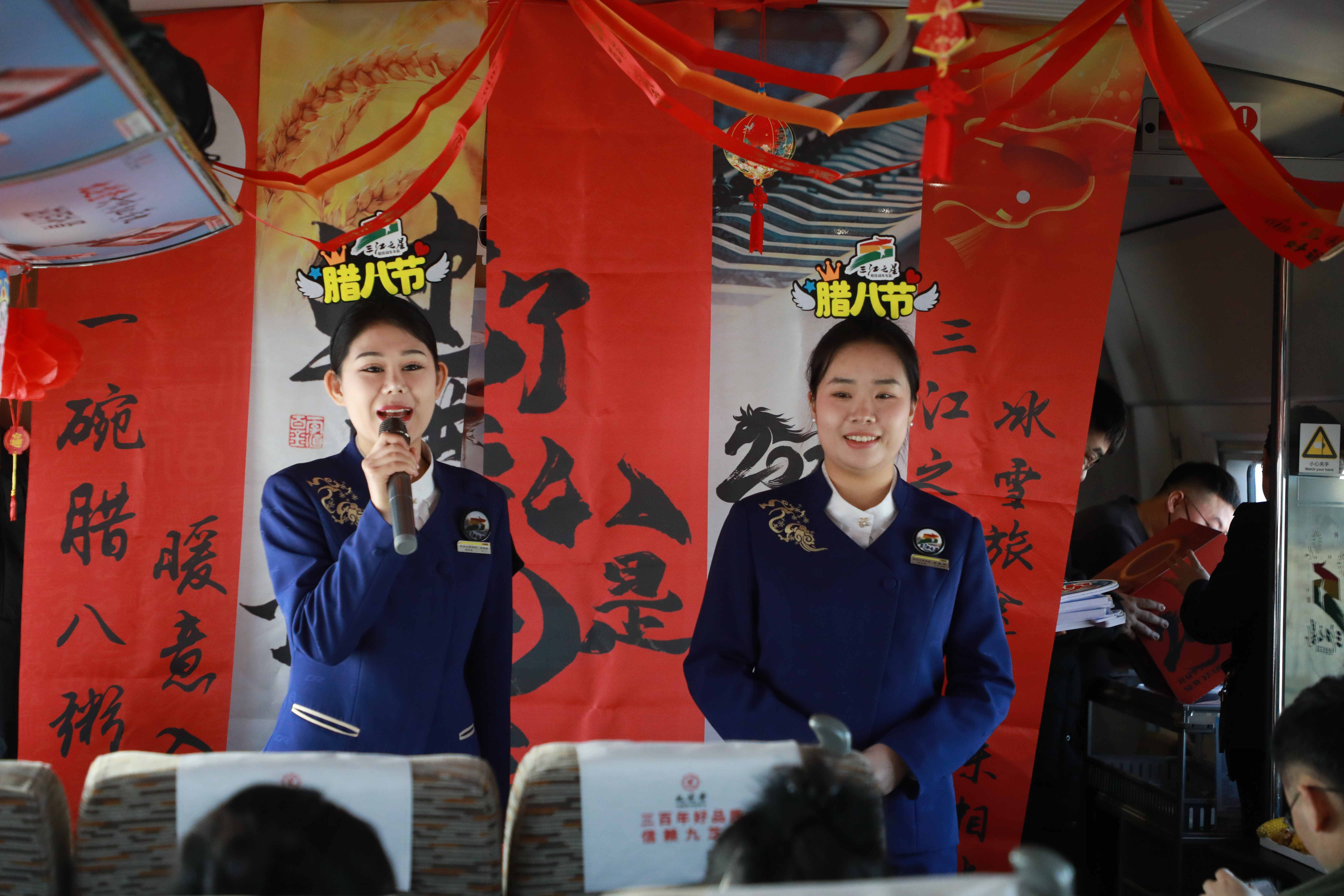 黑龙江网讯(侯继尧 记者 石启立 摄影 李玉祥)农历腊八节当天,佳木斯开往北京朝阳的G3510次高铁列车上,一场“腊八送温暖”主题活动温情上演。旅客在旅途中品尝暖心腊八粥,参与贴窗花、听习俗讲解等文化互动,感受“移动的年味”。这是铁路部门结合岁末出行客流,深化“高铁+文化+旅游”服务理念推出的特色活动。