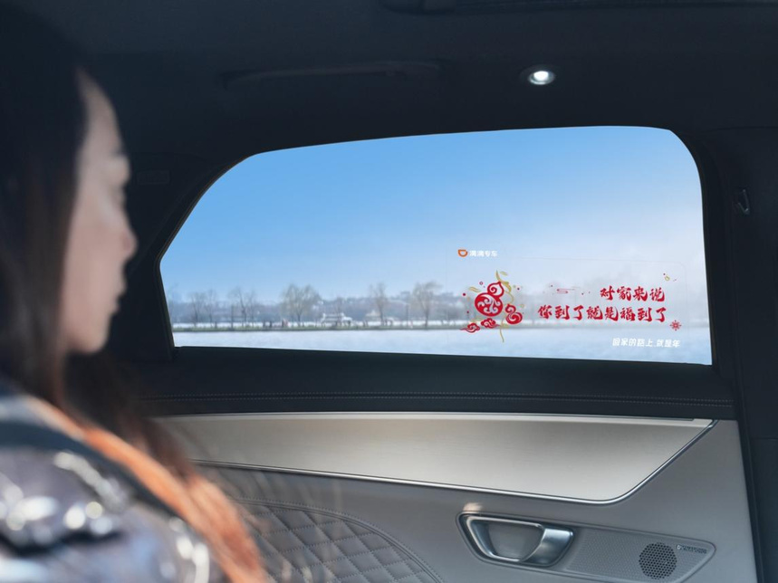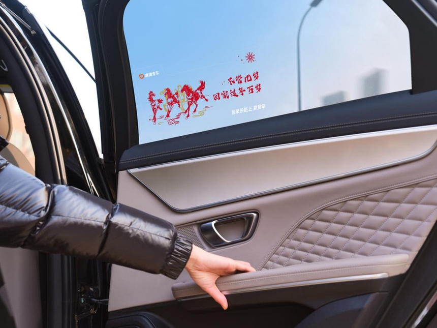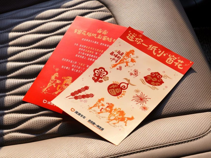 专车的车窗花上刻有象征福禄的葫芦、徐悲鸿笔下奔腾的骏马、绚烂的烟花和象征春天的燕子等喜悦欢快的元素,今年的车窗花不仅在设计上做了升级,还在部分城市定制了方言版车窗花。在泉州,定制版车窗花“2026,一切都嘟嘟厚”,则正是滴滴为专车司机和乘客送上的一切都“刚刚好”的祝福。