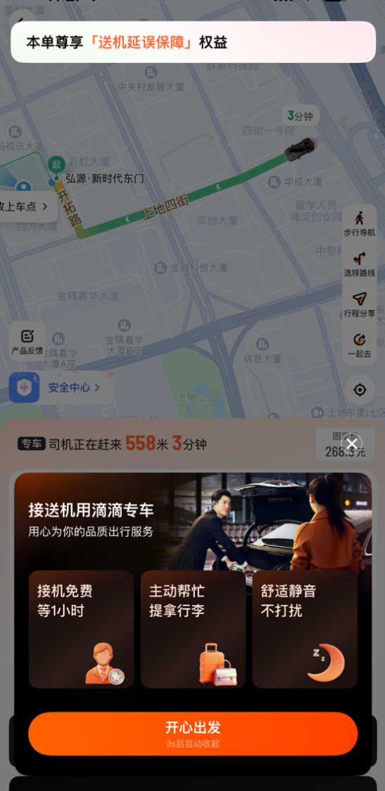 节前返乡,预计更多用户在机场、火车站等大型交通枢纽往返,滴滴专车接送站服务让出行更贴心有保障。场站订单,专车司机师傅会贴心提示乘客带好证件、主动帮忙提拿行李,送机订单还可享受滴滴专车送机延误保障,非乘客原因误机可享最高500元赔付。