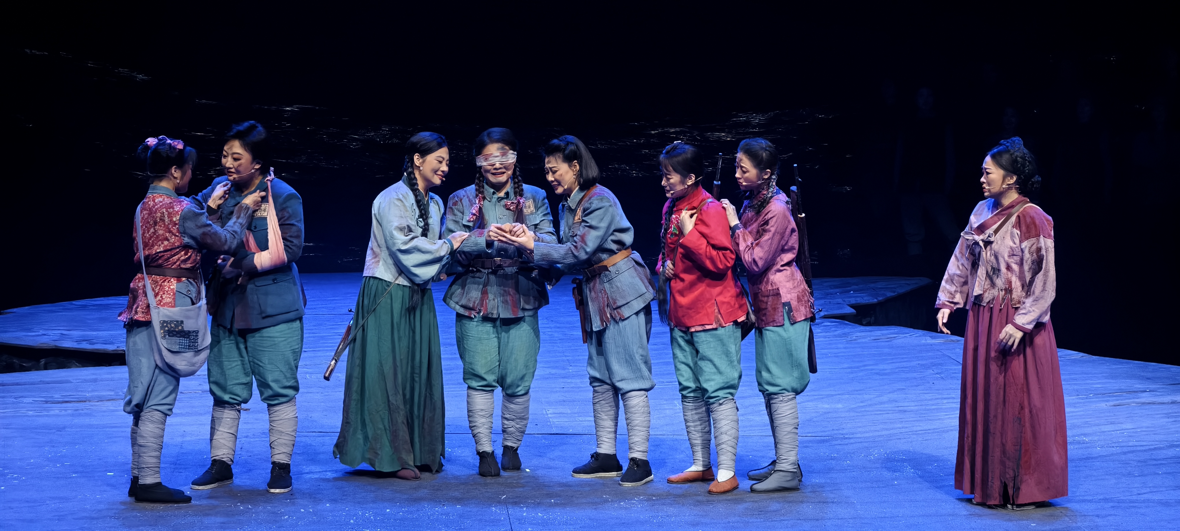 为掩护主力部队突围,妇女团仅存的八位女战士在“三面受敌,背临江水,若遭俘虏,必受凌辱”的绝境中,打光了最后一颗子弹,最终手挽着手,义无反顾地投入冰冷的激流,走向了永恒。