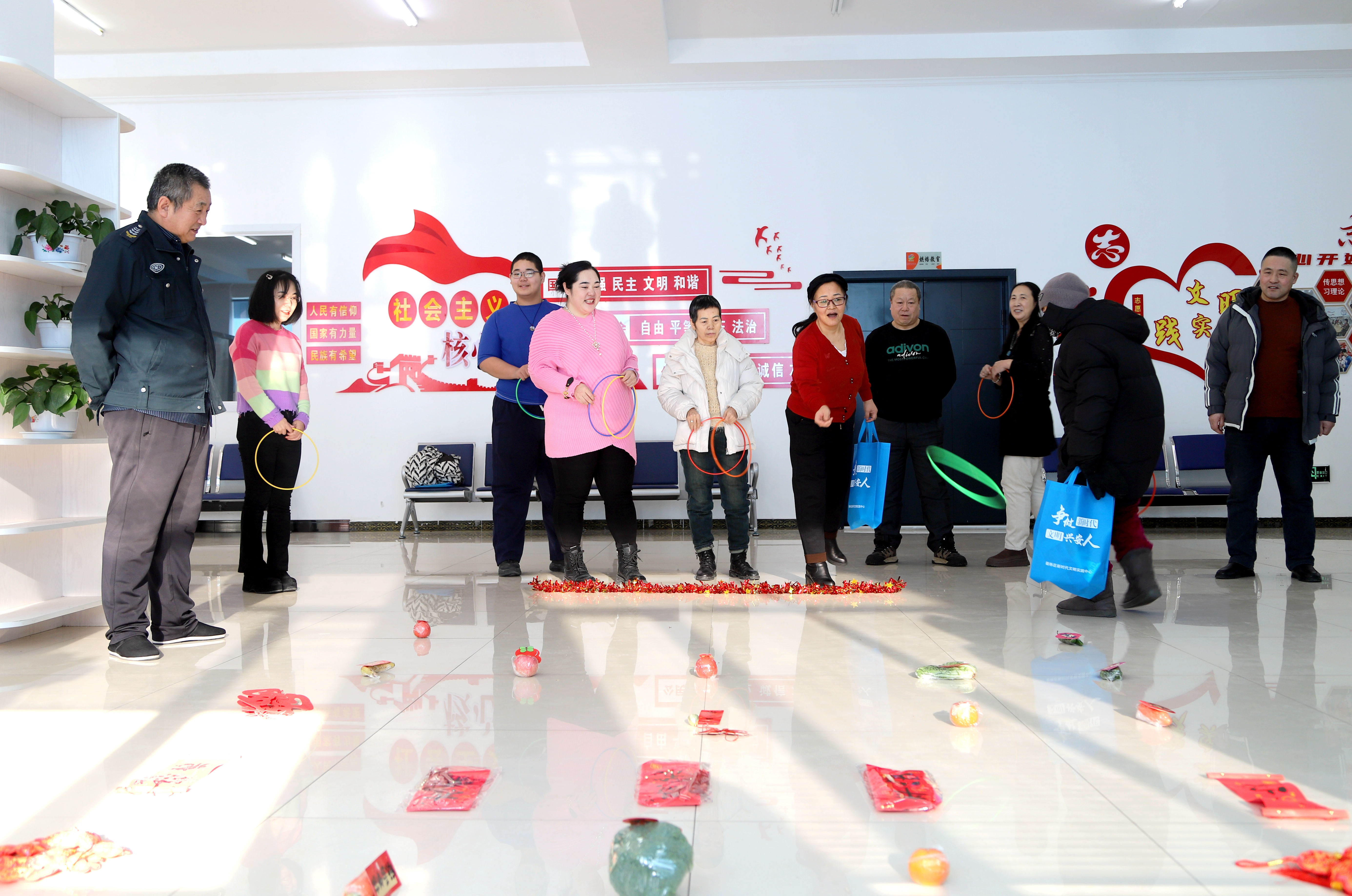 趣味传乐,凝聚邻里团圆温情。各类趣味游戏轮番上演,活动现场欢声笑语不断。“指挥踩气球”游戏中,群众分工协作、默契配合,听从指挥口令奋力踩爆气球,现场氛围紧张又欢乐。“穿花衣搭宝塔”比拼中,选手们争分夺秒穿花衣、搭宝塔,既比拼速度又考验耐心。“蔬菜圈圈乐”最具人气,参与者手持套圈,瞄准生菜、洋葱、西红柿等“目标”奋力投掷,套中的不仅是心仪的礼品,更是满满的欢乐与惊喜,让大家在轻松愉悦的氛围中释放压力、收获快乐,也进一步拉近邻里之间的距离,凝聚起浓浓的团圆温情。