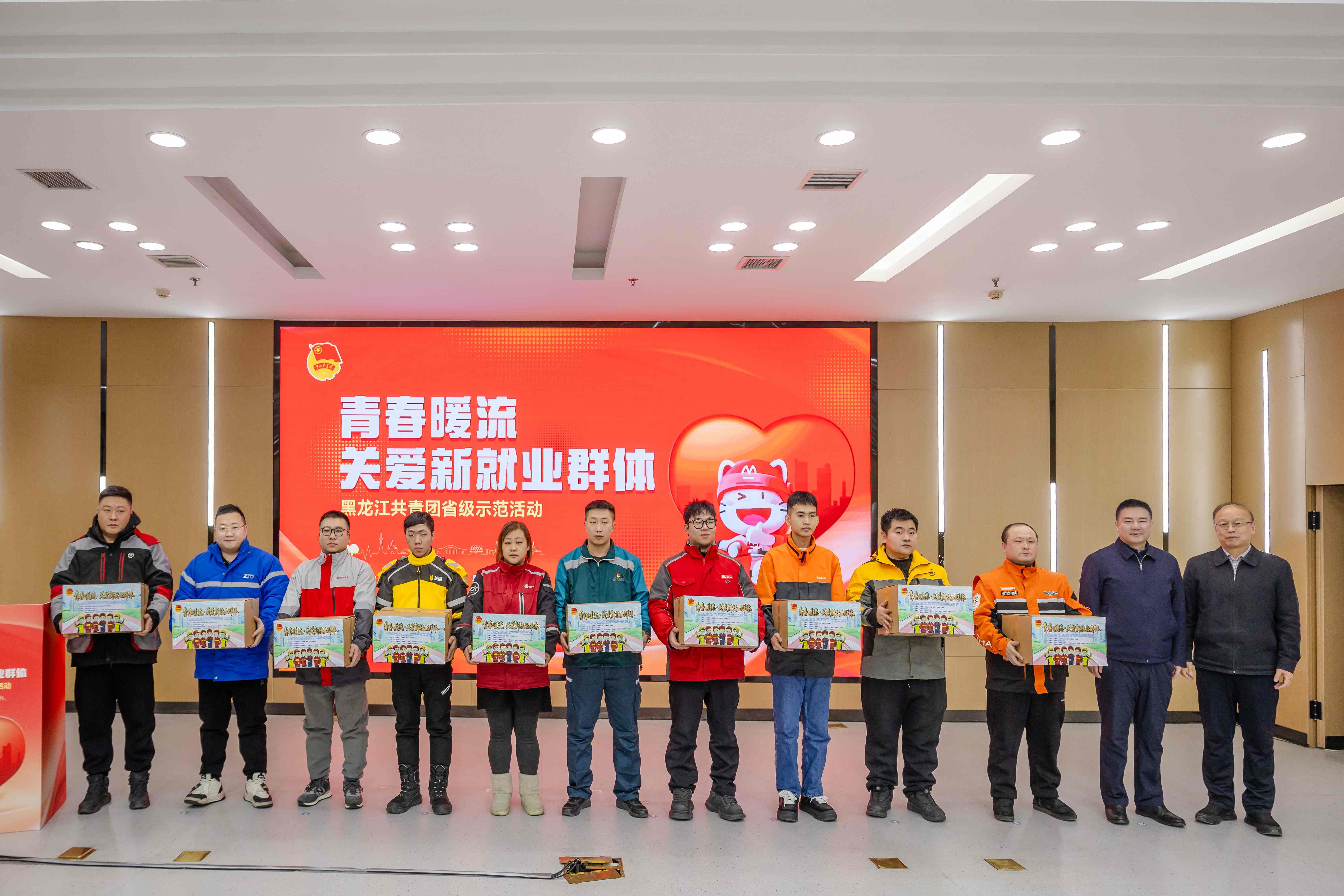 黑龙江网讯(郭革 记者 石启立)2月4日,“青春暖流·关爱新就业群体”黑龙江共青团慰问快递送餐人员省级示范活动在哈尔滨举办。此次活动由共青团黑龙江省委员会、黑龙江省邮政管理局主办,招商银行哈尔滨分行承办,多家爱心单位携手发力,为奔波在一线的新就业群体送上冬日暖意与新春祝福,进一步增强他们的归属感、获得感与幸福感。
