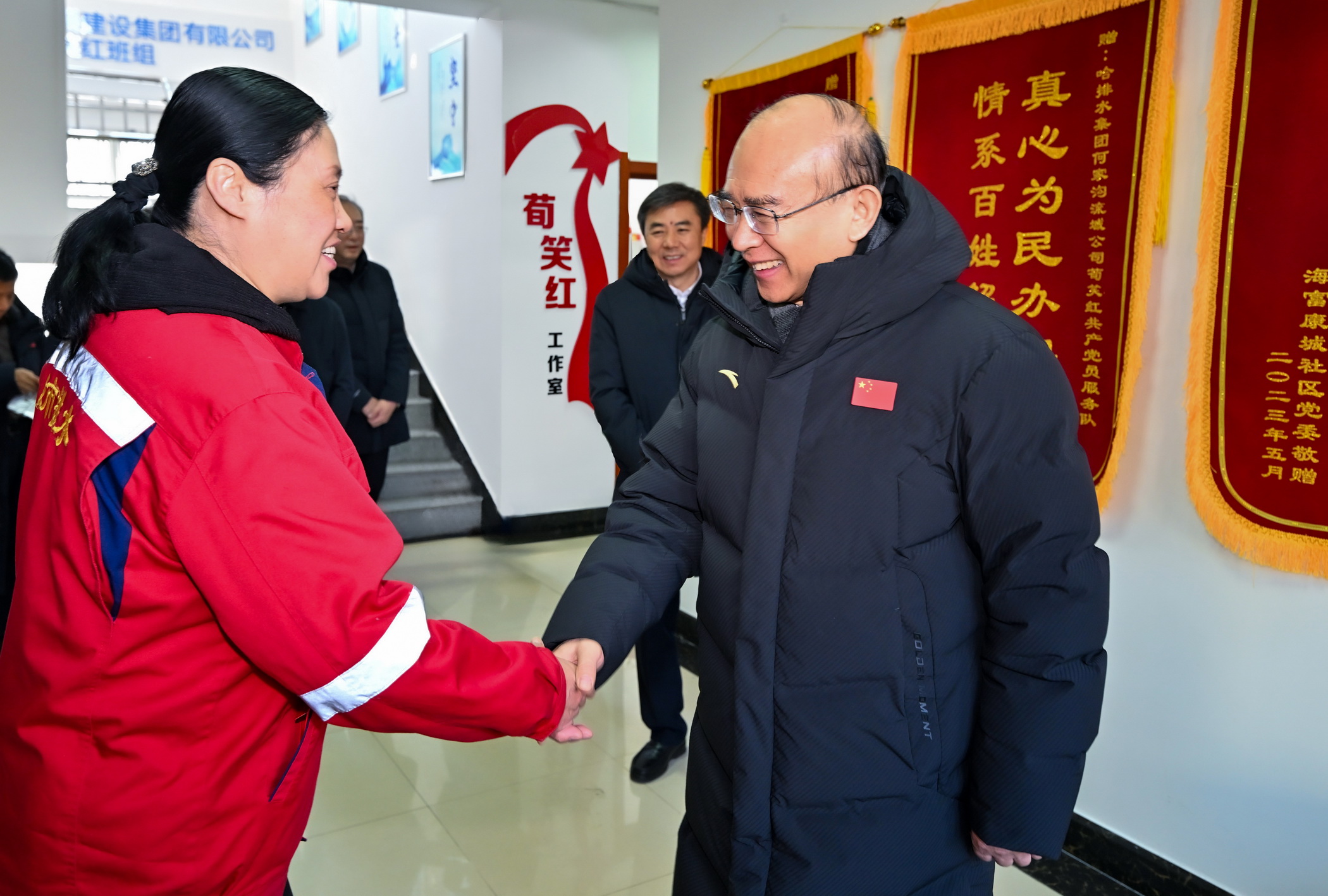 许勤抵达哈尔滨水务集团荀笑红班组,看望慰问全国优秀共产党员荀笑红。