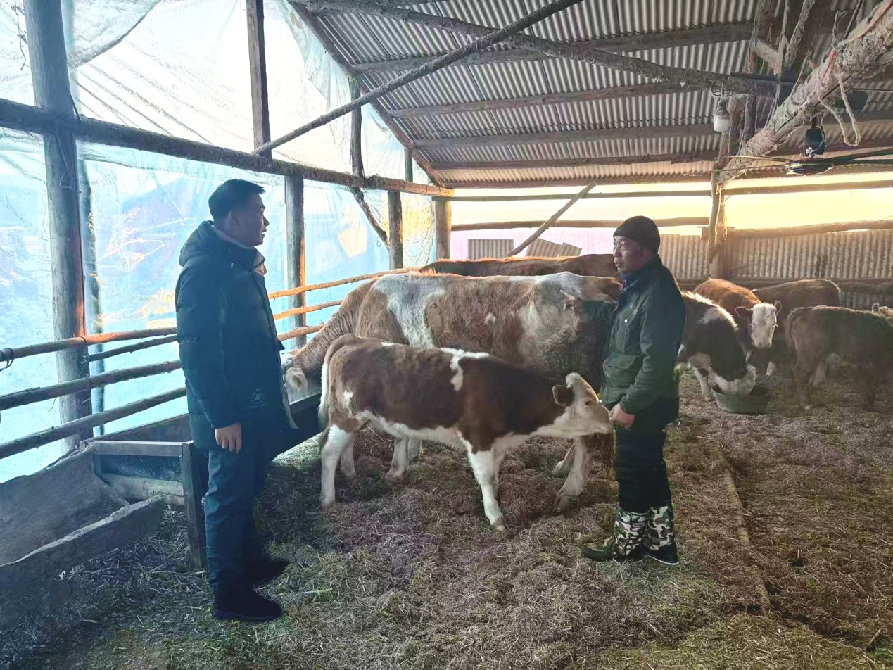 在养牛大户周瑞的牛舍旁,工作队队员细细询问冬季草料储备和肉牛养殖情况,周瑞笑着打开了话匣子:“去年春耕多亏了建行的‘农户快贷’,10万块钱很快就到账,利率还低,不仅解了草料的燃眉之急,还添了几头小牛犊。现在日子有奔头,过年也更有滋味了!”