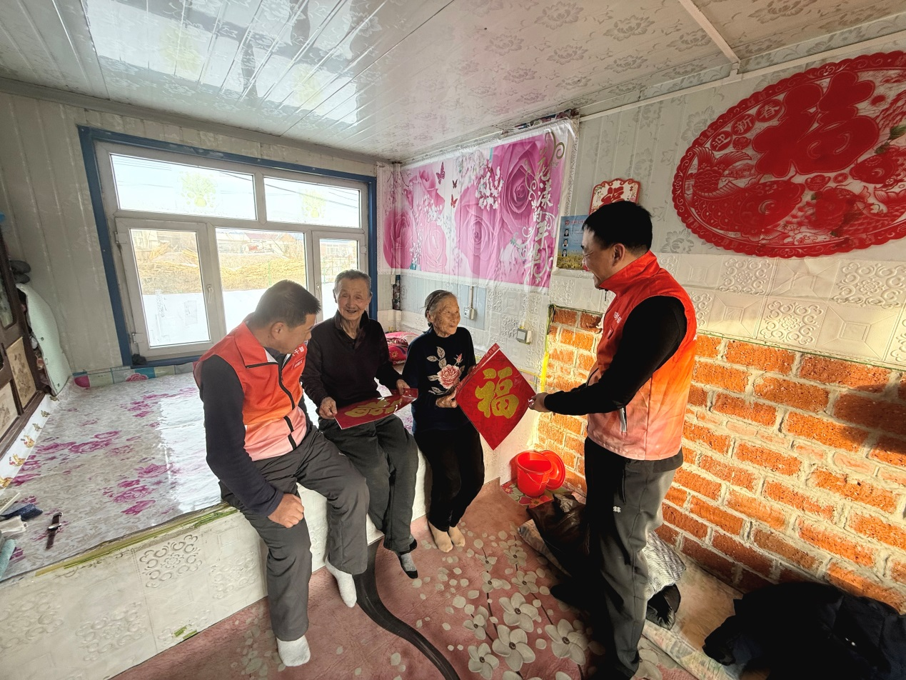 每到一户,工作队队员都与村民促膝交谈,细细询问身体状况、冬季取暖、年货筹备等实际情况,耐心倾听大家的新年期盼,认真记录生产生活中的“急难愁盼”,反复叮嘱老人注意用火用电安全,遇到困难及时联系。一句句暖心的问候,一件件实用的物资,一张张喜庆的福字,让村民们在寒冬中感受到浓浓的暖意,欢声笑语回荡在农家小院里。