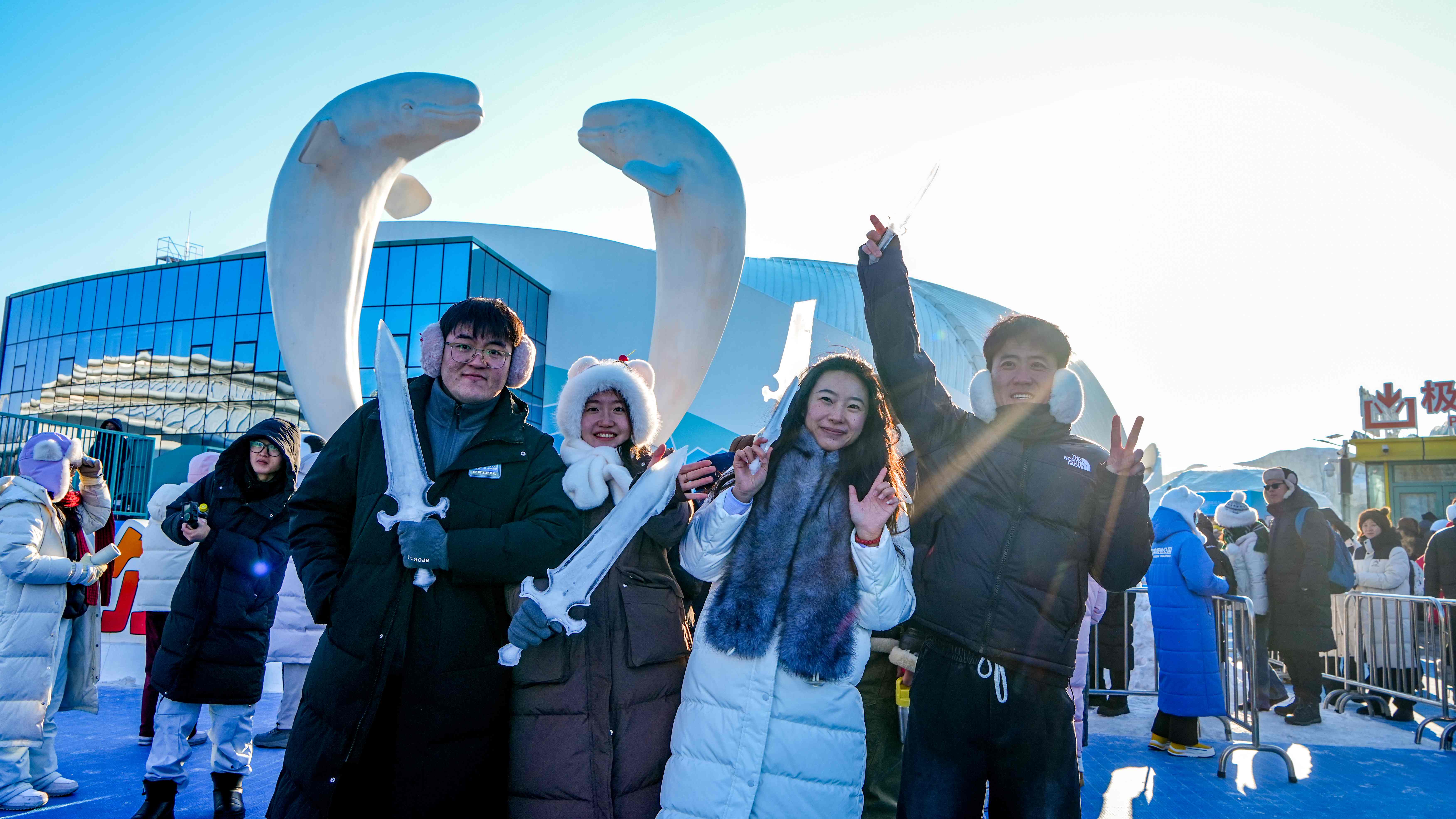 为让游客沉浸式感受新春氛围,极地公园融合传统马年元素,精心打造多处新春主题互动点位。火爆全网的冰雪景观“冬日童话镇”换上新年盛装,满目“新年红”装饰将新春氛围拉满,成为游客定格新春美好瞬间的绝佳去处。同时,一系列趣味春节互动活动接连上线,财神现场派发红包送福、疯狂雪场打雪仗大赛、特制“冰剑”免费赠送等活动轮番开展,让游客在体验极地冰雪乐趣的同时,感受地道的东北新春年味,在欢声笑语中传递暖心新春祝福。