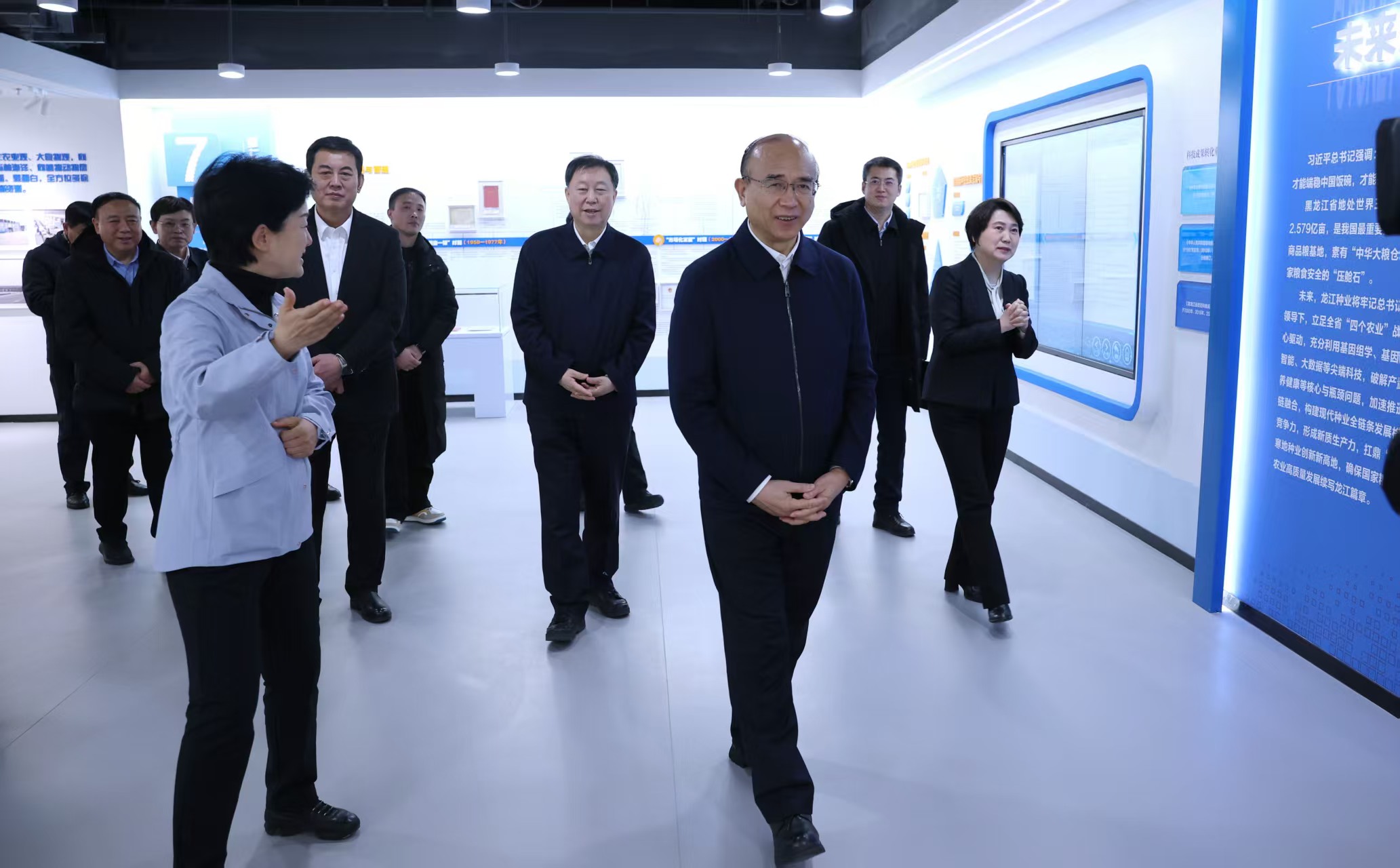 许勤一行还来到省农科院种业创新成果展示和转化交易中心,了解种业科技成果推广、知识产权交易、企业孵化等情况。他强调,要积极对接我省农业生产需求,推进种业创新和产业发展,建好“一站式”种业科技转化交易服务平台,构建现代种业全链条发展格局,让更多优质“龙江芯”扎根黑土、服务全国,为保障国家粮食安全、建设农业强省提供坚实支撑。