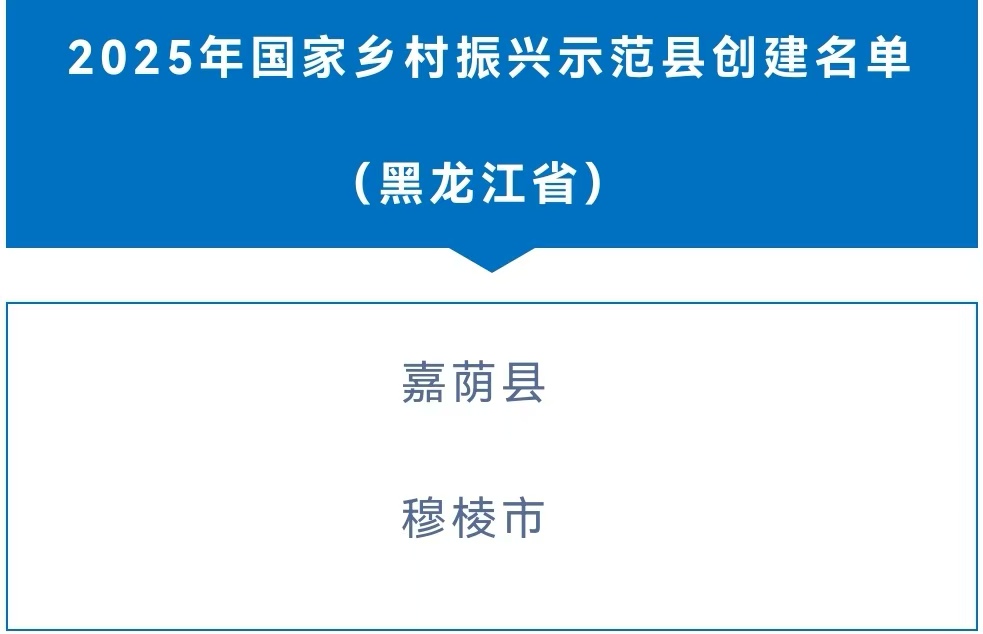 近日,农业农村部公布2025年国家乡村振兴示范县创建名单。其中,黑龙江2地入选。