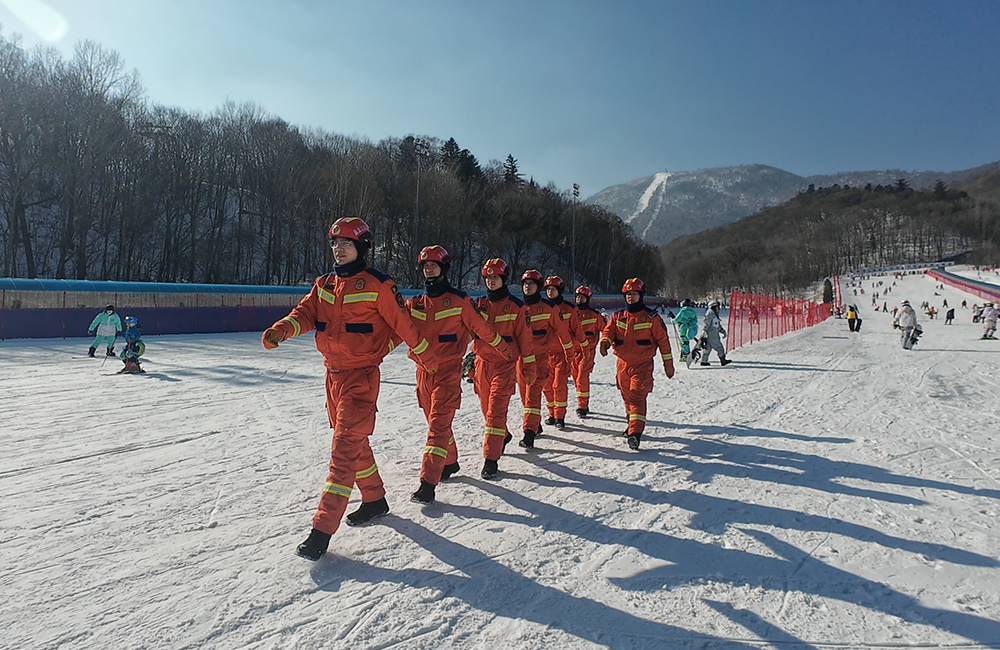 在景区的人流中,“救援橙”的身影格外引人注目。他们时刻保持着警惕,关注着周围的情况,一旦发现有游客遇到困难或突发状况,便会第一时间伸出援手。哈中队中队长李博介绍到,“亚布力国际旅游度假区每日接待游客近万人次,为完成好此次应急救援前置备勤任务,我们开展了滑雪救援技术、高空索道救援、车辆破拆、伤员转运等课目专勤专训,夯实了救援能力,保障了游客安全。”
