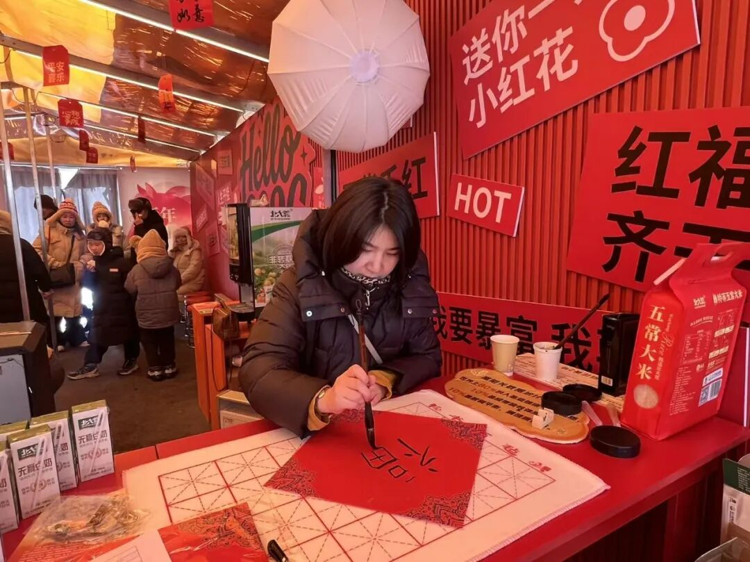 依托爆棚人气,“黑土优品•北大荒”暖心冰屋线下销售火力全开。作为集章终点站与体验核心区,冰屋推出集章赠饮、玩偶巡游、现场试吃等互动活动,豆奶、豆腐、有机杂粮、酸菜等北大荒爆款农产品备受青睐,线下单日销量较平日增长450%,不少游客直言:“跟着春晚买‘北大荒’,放心又暖心。”