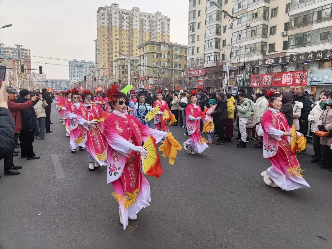 在各队领队的带领下,秧歌队员们踩着铿锵有力的鼓点,舞动着手中的彩扇、绸带,扭出了东北秧歌热情奔放、韵味十足的独特风情。其间,腰鼓队鼓声激越、振奋人心,舞龙舞狮灵动翻飞、气势如虹,旱船摇曳生姿、年味满满、妙趣横生……