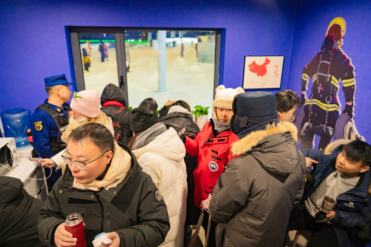 于是,才有了69 天里,最让我们骄傲的一组数字 ——1504 次帮助。我们的冰雪主题消防救助站,挤过天南海北的游客:有低估东北严寒、冻得手脚发麻来取暖的;有急需冻伤膏、热水、临时休息的;有丢了孩子、慌得手足无措的;有回来寻找手机、身份证、背包的;也有专程赶来,只为说一句谢谢、留一句祝福、打一次卡的。