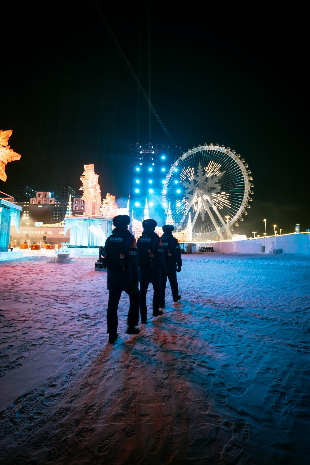 69 天,1656 个小时,99360 分钟 —— 从冬至到立春,从数九寒天到冰雪消融。我和队友的脚步,仿佛早已长在这片冰面上。那些冻进骨头里的记忆,我想趁着春天,一点一点捂热,说给时间听。这是我在冰雪大世界执勤的第四个年头。从刚入队的毛头小子,到去年亚冬会火炬塔下的值守,我开始慢慢学会记录我们的日子。说实话,起初真的很累。从早 9 点到晚 10 点,一遍遍穿梭在园区,做的都是细碎又平常的小事。可队长总说:游客的事没有小事,帮助别人,就是我们的责任。