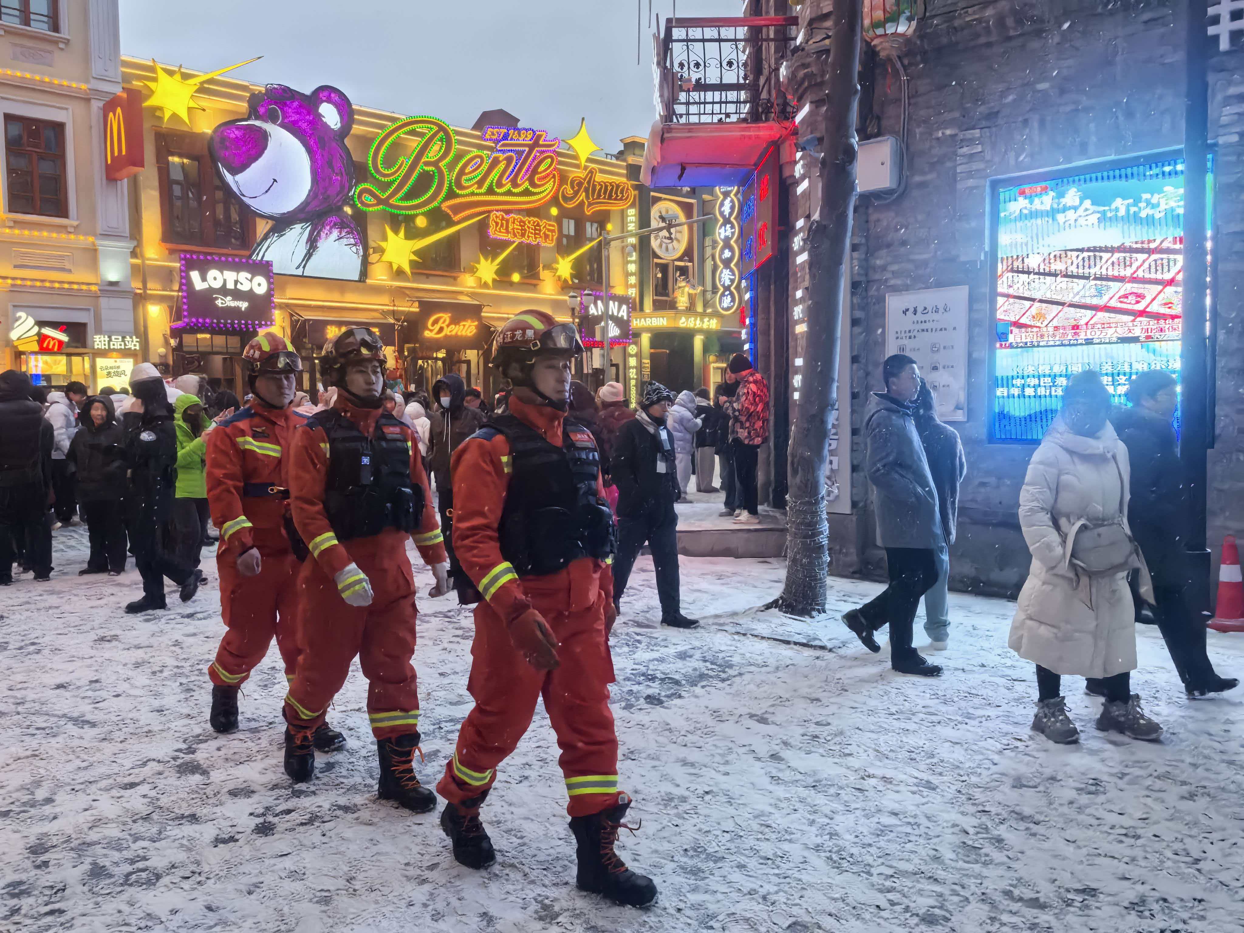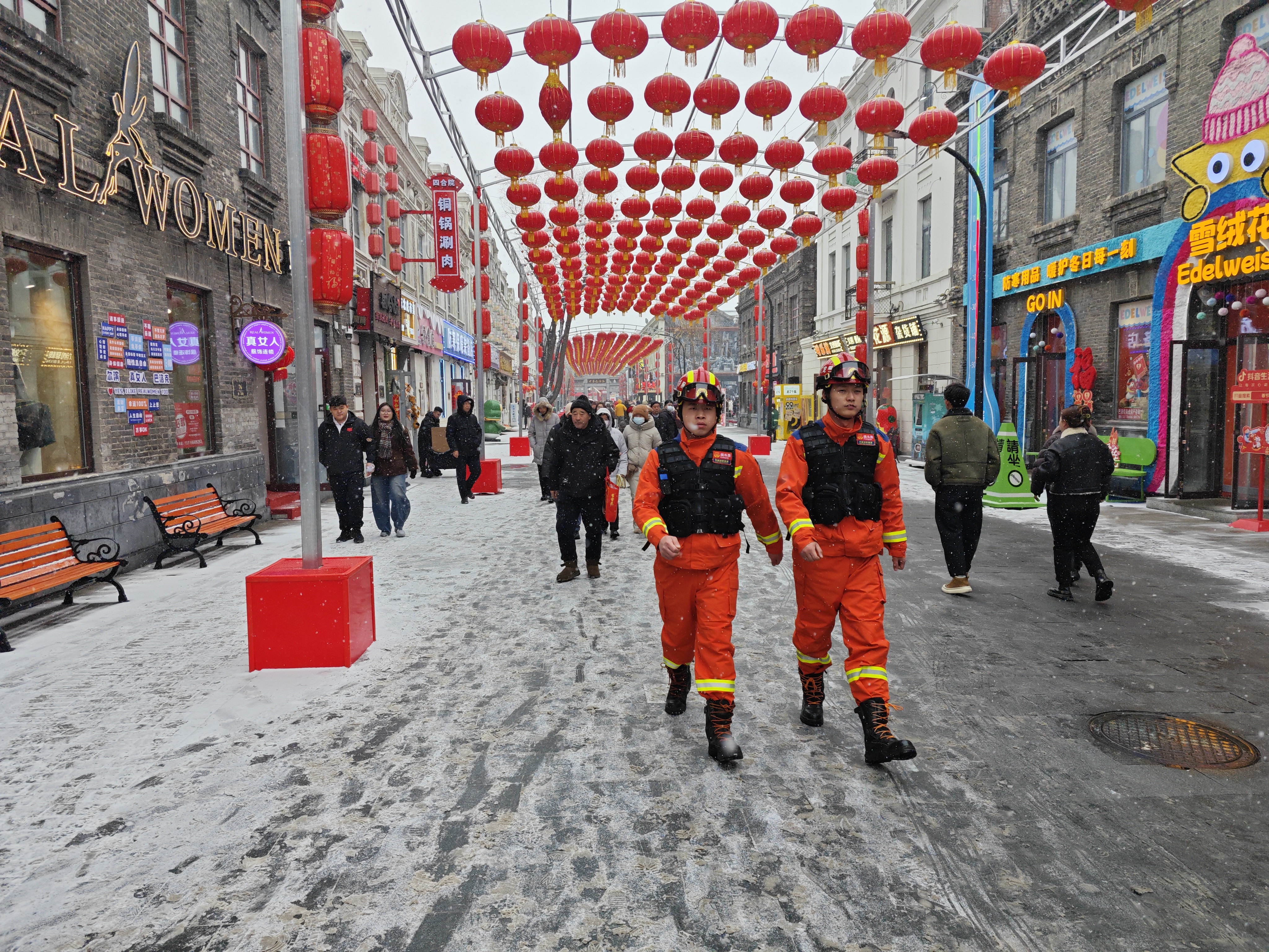 中华巴洛克街区古建筑密集、街巷交错狭窄,灯会期间花灯搭建、民俗巡游、商户互动等环节叠加,人员聚集、用电集中,火灾防控与秩序维护压力陡增。哈尔滨市道外区消防救援局提前谋划、周密部署,严格按照灯会安保工作方案,组建专项工作队伍,划定龙江大舞台、尔滨故事广场等核心执勤点位,明确小型消防车停放区域与动态巡逻路线,自3月2日16时起,执勤力量全员到岗、持证履职,配齐配足灭火救援装备,做到重点区域盯守不松懈、关键路段巡查无空档,以“时时放心不下”的责任感筑牢第一道安全防线。
