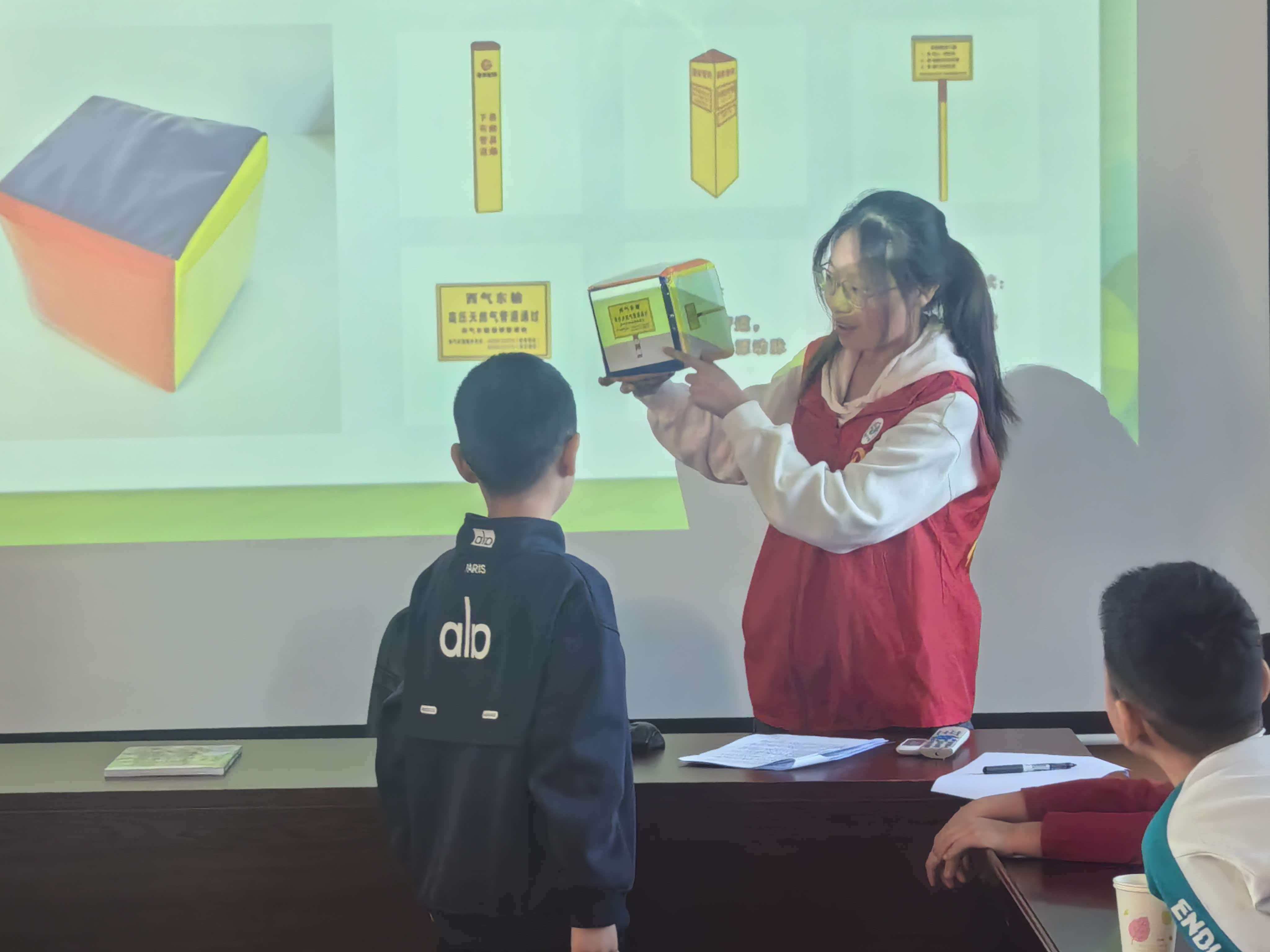 为提升知识传递的针对性与系统性,服务队围绕管道保护核心主题,进行深度内容开发与分龄化教学设计。针对小学生群体,相关活动以动画PPT、情景剧场及“管道安全小剧场”“隐患找茬”等游戏化教学为主,通过口诀、骰子互动强化标识识别,借助情景模拟实操帮助辨识管道功能;面向中学生群体,则结合真实案例分析与应急技能演练,重点传授“闻味速报、禁火撤离”等泄漏处置要诀,并通过“安全小考官”角色扮演巩固“撤离-报告-指位”的正确流程。