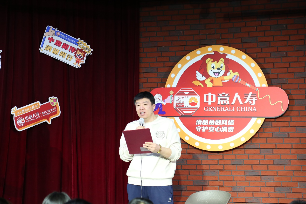 分公司总经理助理邵慧宇登台致辞,向现场的新就业群体代表及新老客户们致以诚挚问候,围绕公司消保工作理念、践行的社会责任与服务初心,传递出中意人寿始终将守护金融消费者合法权益放在首位,用心做好金融消保服务、筑牢金融消费安全屏障的坚定决心。