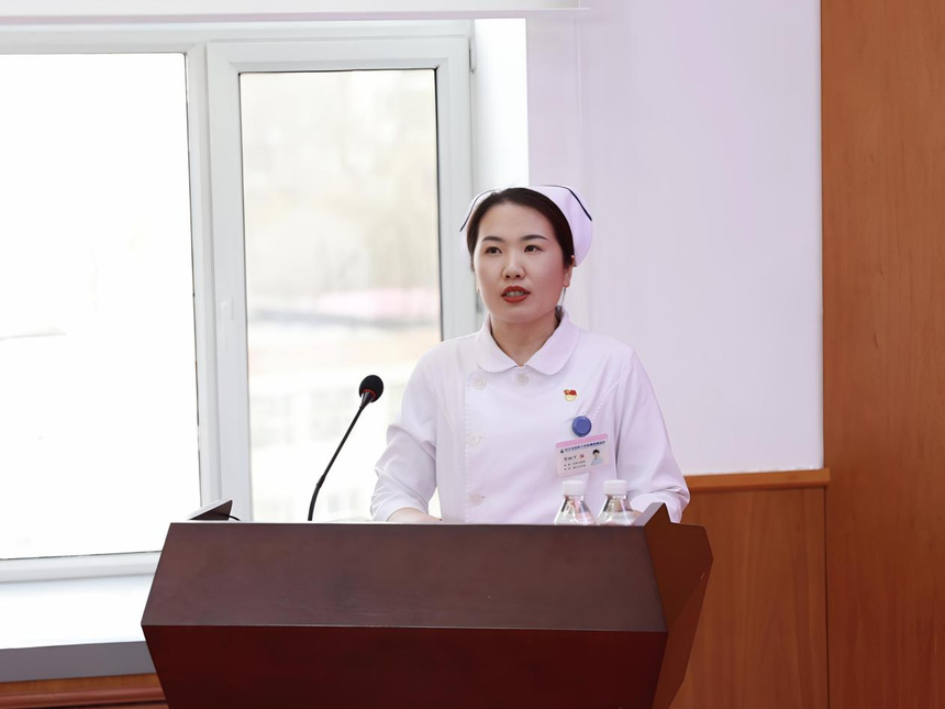 妇科五病房护士长郑丽平作为新任代表发言。她感恩医院的信任与培养,表示将尽快完成从临床护士到护理管理者的角色转变,把荣誉化为动力、把责任扛在肩头,带领护理团队深耕专业、优化服务、凝心聚力、协同共进,以实干实绩不负医院重托与患者期盼,书写护理管理新篇章。