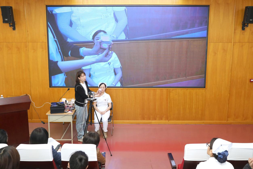 本次活动特邀专业美妆讲师亲临授课,围绕职场女性日常妆容需求,结合医护工作特点,从基础护肤、底妆打造、眉眼修饰、唇色搭配等实用技巧展开细致讲解,通过理论讲解、现场演示、互动教学相结合的方式,手把手传授简洁高效、端庄得体的职业淡妆技巧。现场女职工认真聆听、积极互动,踊跃提问交流,在轻松愉悦的氛围中学习美妆知识、掌握实用技能,充分感受美妆带来的自信与魅力。