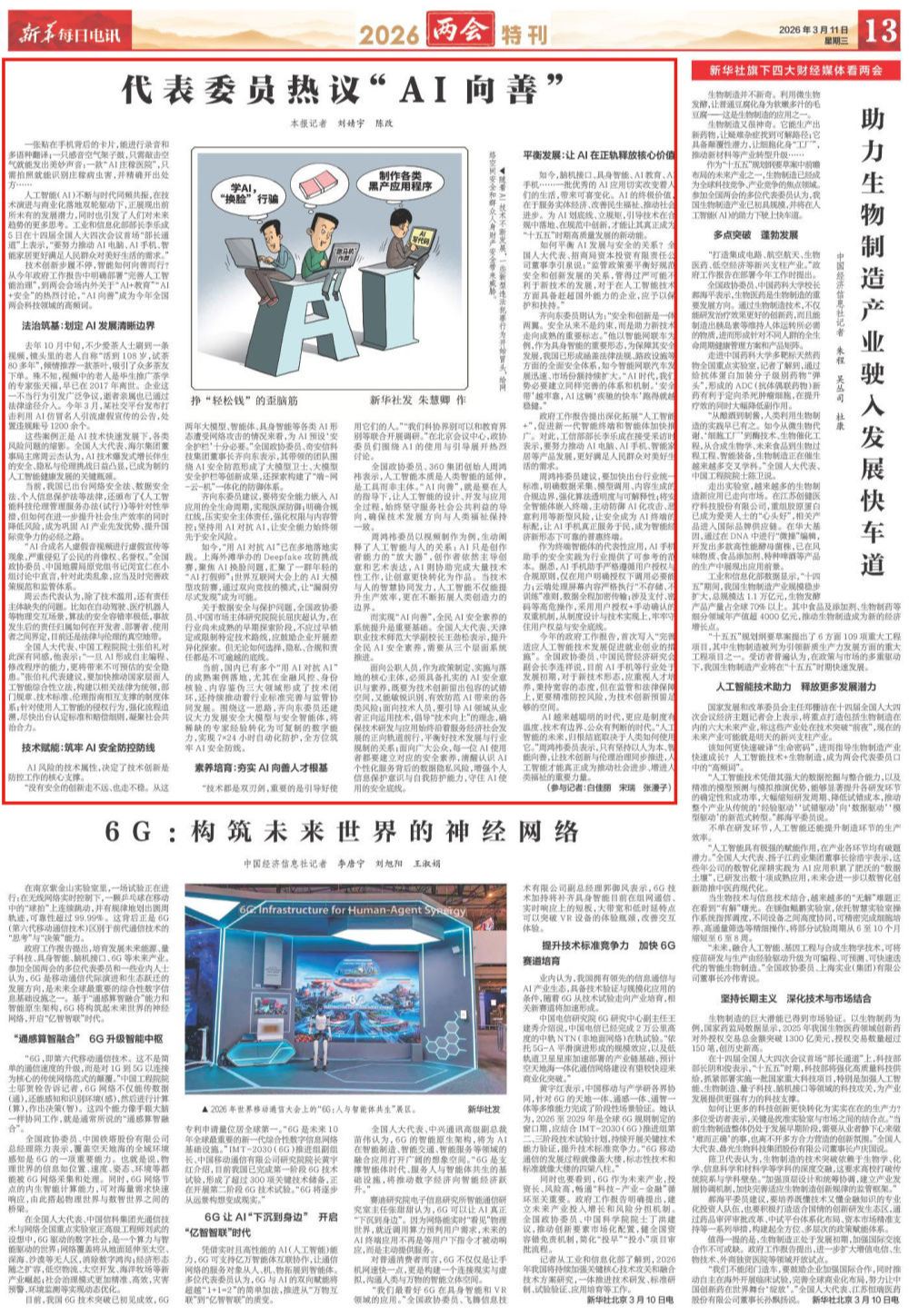 如今,脑机接口、具身智能、AI教育、AI手机……一批优秀的AI应用切实改变着人们的生活,带来可喜变化。AI的终极价值,在于服务实体经济、改善民生福祉、推动社会进步。为AI划底线、立规矩,引导技术在合规中落地、在规范中创新,才能让其真正成为“十五五”时期高质量发展的新动能。