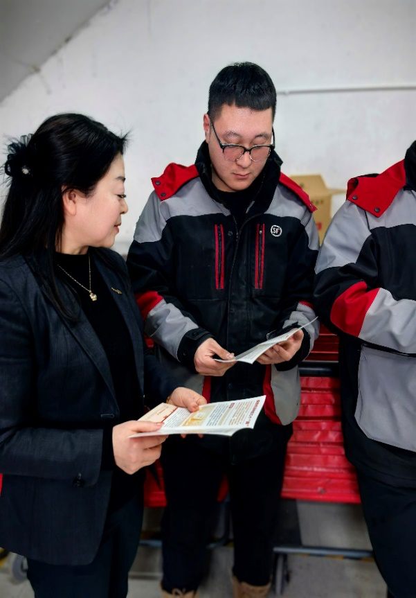 活动中,工作人员结合快递员工作生活场景,用通俗易懂的语言,重点讲解代理退保、虚假理财、个人信息泄露等常见金融陷阱,通过真实案例剖析风险危害,普及金融消费者八项权益与保险消费投诉热线等正规维权渠道。同时现场发放宣传折页,一对一解答金融消费疑问,让金融知识更接地气、入脑入心。