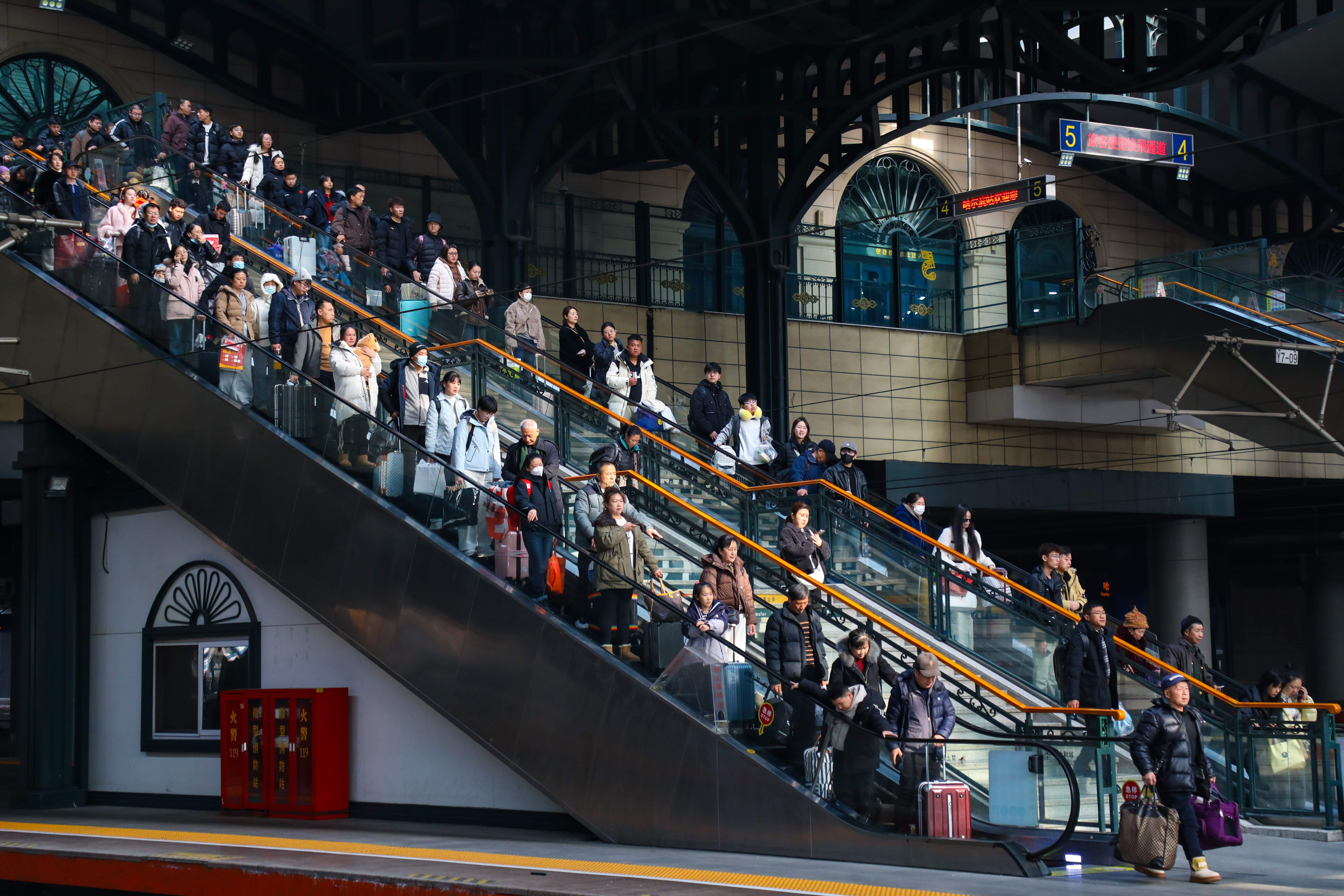 哈尔滨局针对北京、天津、广州、上海、杭州等热门方向增开直通临客列车827列;省内齐齐哈尔、牡丹江等方向临客列车3448列。在京哈、哈大、哈齐等主要高铁干线增开夜间动车组,并在保障高铁运力的同时,保持公益性“慢火车”开行规模,服务偏远地区群众出行。