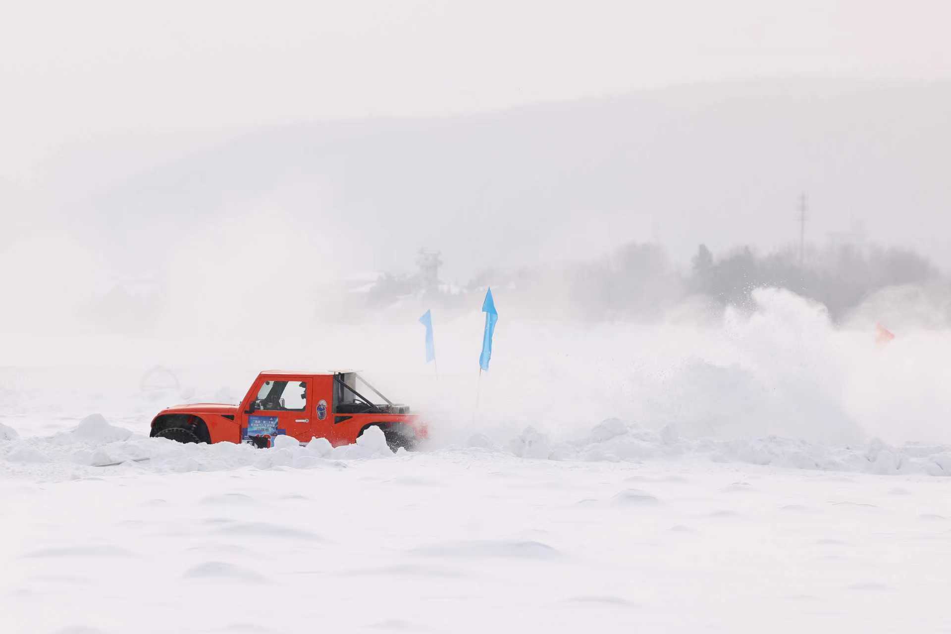 比赛在冰封的黑龙江上进行,舒展的直道与错落的弯道相互映衬,既凸显了冰上赛事的独特韵味,也充满了竞技挑战。各色涂装的参赛赛车整齐列阵,在皑皑白雪的映衬下格外亮眼,外露的防滑钉胎泛着冷冽的金属光泽,随时准备奔赴这场冰上较量。参赛车手吴海波表示:“赛道设计非常专业,有挑战性,驾驶感觉特别刺激,过弯漂移的感觉特别爽。”