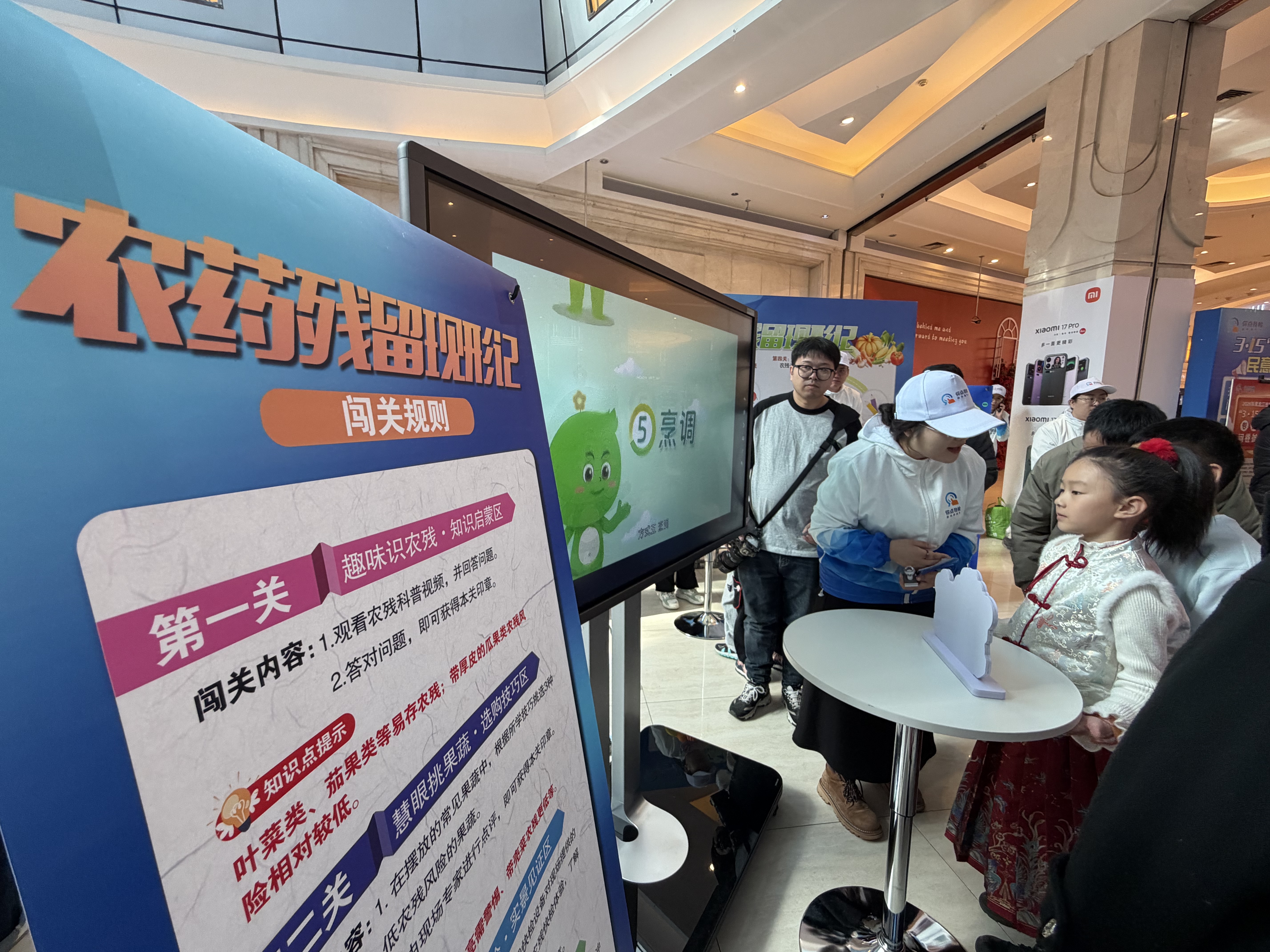 主会场亮点纷呈,构建了政府部门、承检机构、新闻媒体、食品企业等多方参与的全链条服务场景。市场监管部门向全省食品生产经营主体发出倡议,企业代表现场作出诚信经营承诺,旨在推动群众从食品安全“旁观者”转变为“参与者、监督者、受益者、宣传者”。现场设置八大主题展位,融合“科普+互动+实操”理念。“你点我检”征集台、“农药残留现形记”等四大科普展位,通过专业讲解与现场演示,普及农药残留检测、微生物观察等知识;“果汁侦探社”“调味品添加剂揭秘”等四大互动体验展位,则通过“小小检测员”等沉浸式环节,让群众在亲手操作中学习辨别方法,树立科学消费观念。现场还开展“手机变砝码”计量活动,助力识别“鬼秤”。活动氛围热烈,群众反响积极,小朋友化身“小小检测员”,社区居民亦对科普服务表示感谢。