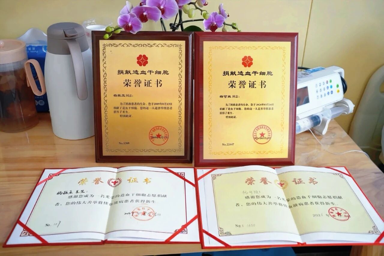 杨可欣的父亲杨振亚,曾在2009年捐献造血干细胞救助白血病患儿,17年来,父亲一直是杨可欣心中的榜样。2025年8月,刚满18岁的杨可欣,便循着父亲的足迹,主动加入中华骨髓库,用一份青春承诺,为生命预留希望。2025年12月,当中华骨髓库的配型成功的通知传来,得知自己与一名血液病患者高分辨配型相合时,这个19岁的姑娘没有丝毫犹豫,当即同意捐献:“能像爸爸一样救人,能为另一个生命续航,这是我能做的最有意义的事。”