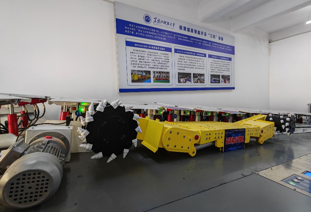 黑龙江科技大学展示的极薄煤层智能开采装备模型