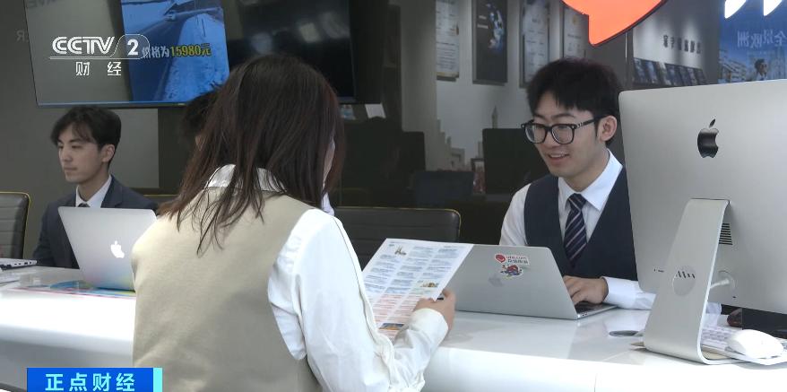 在北京朝阳区一家旅行社线下门店,不少市民前来咨询清明假期出行产品。