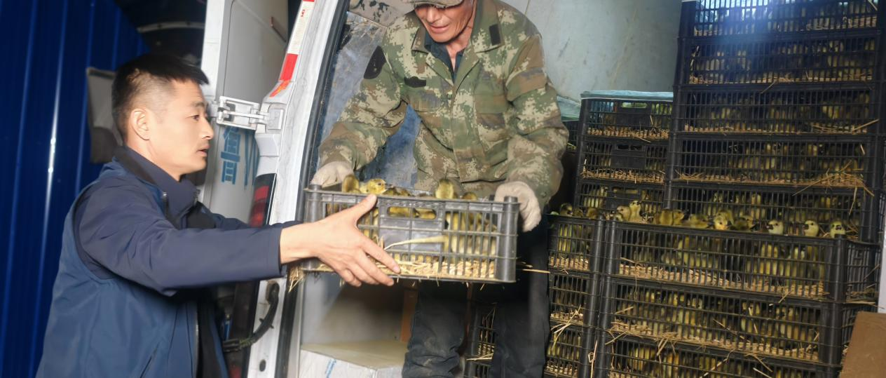 朗德鹅苗运抵逊克县松树沟乡新立村养殖基地