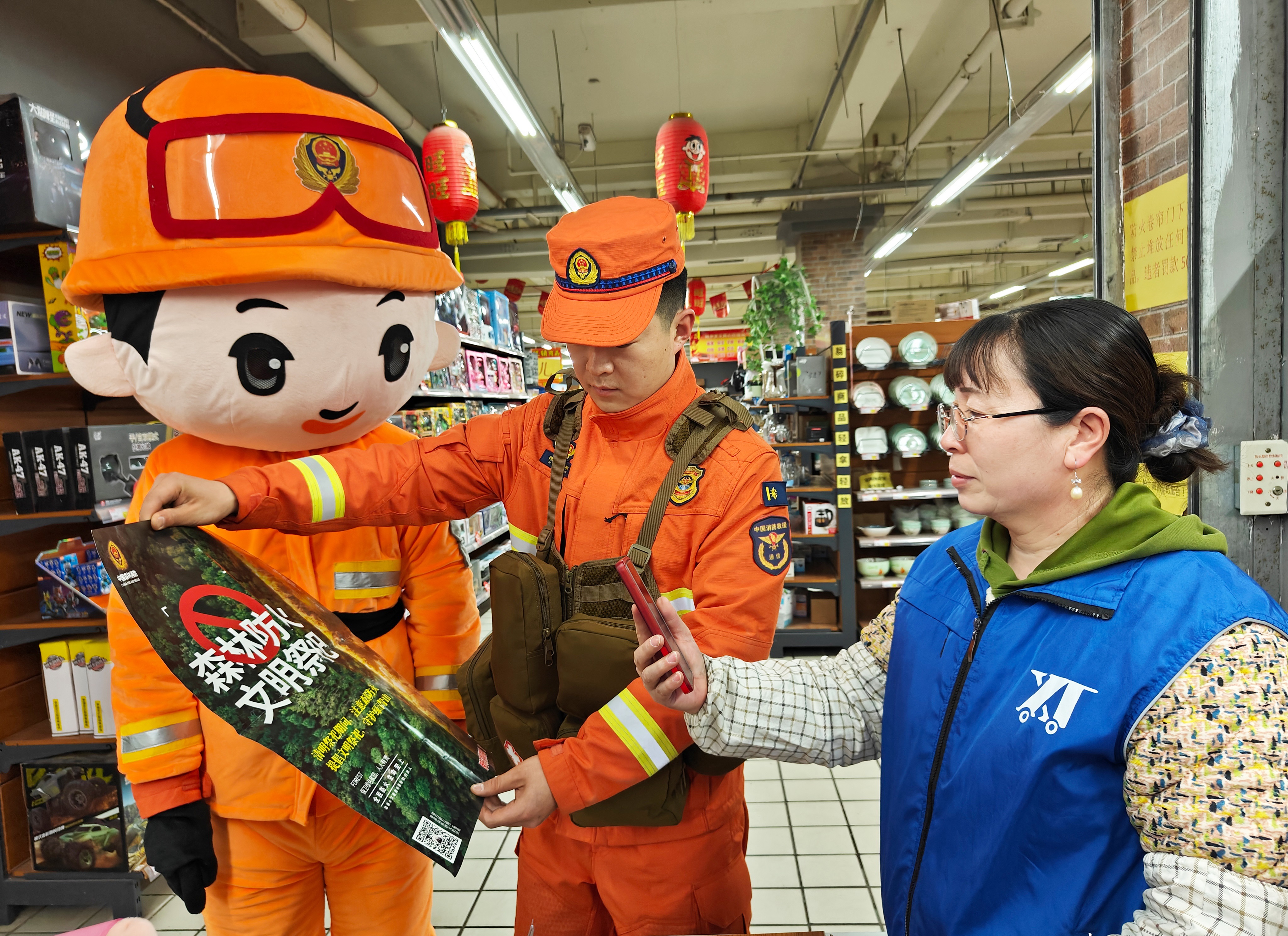森林防火,宣传为先,预防为要。行动期间,总队统筹防火力量,构建起覆盖全域的防火防控网络,从松花江畔到林区腹地,各地指战员进陵园、入林场,进广场、入村屯,进景区、入商场,采取流动宣传与定点宣传相结合的方式,通过设立防火常识图板、开展防火知识宣讲、发放宣传单等方式,向驻地群众宣传防火理念,普及防火常识,通过组织大规模、大范围、大声势、大跨度的专项防火行动,动员社会各界力量广泛参与森林草原防灭火工作,努力构建森林防火人人有责的预防体系,进一步增强全民防火意识,在龙江大地营造出“重视防火、参与防火、守护防火”的浓厚社会氛围。