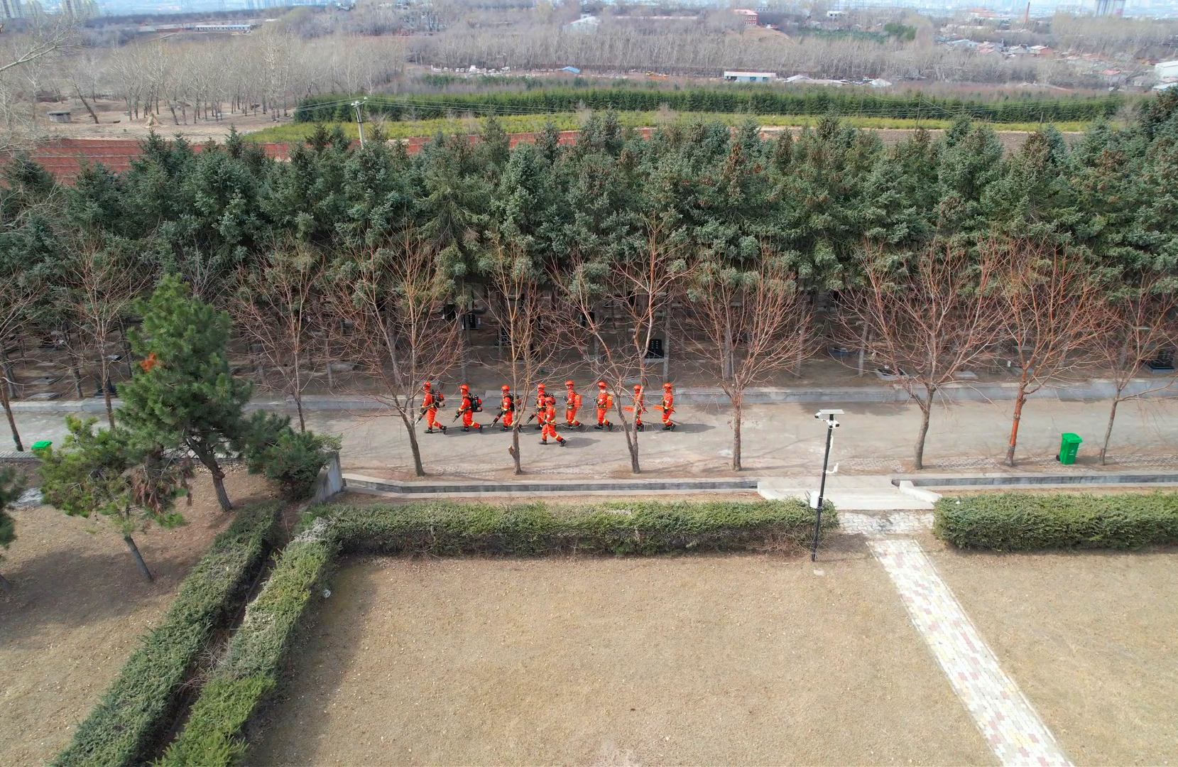 在牡丹江市林口县龙山公墓,担负巡护执勤的哈尔滨消防救援机动支队林口大队二中队指战员全程巡逻防控,紧盯祭扫高峰时段,主动向祭扫群众讲解野外用火的危险性与森林火灾的危害性以及违规用火的法律责任,教育引导村民群众自觉做到文明祭扫,严防用火不慎引发火情,用坚守为清明祭扫筑牢安全“防火墙”。