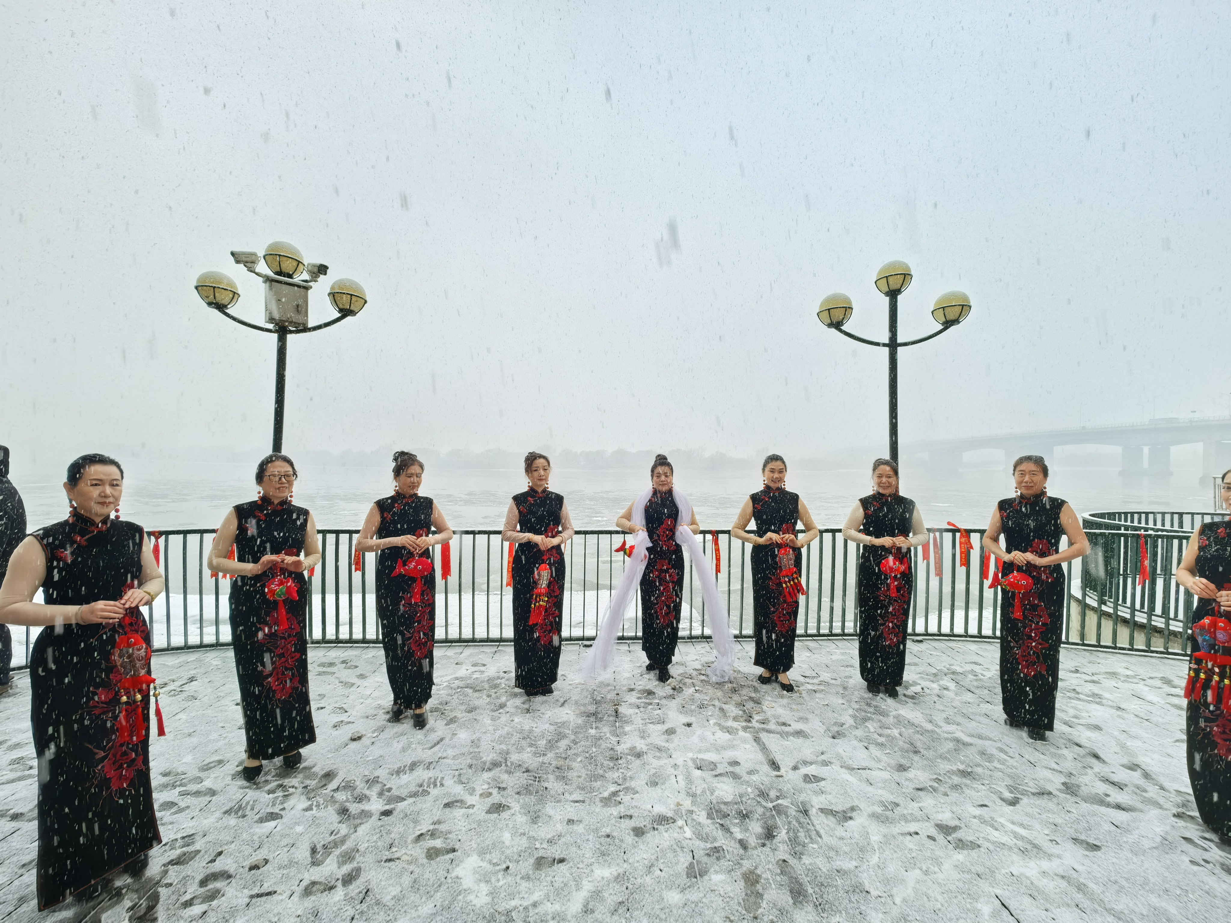 祈福环节结束,群众文艺展演精彩上演。现场不仅有热闹激昂的击鼓表演,鼓声铿锵振奋人心,更有劲爆十足、青春洋溢的街舞表演,年轻时尚、活力满满,尽显朝气。歌伴舞《开江欢歌》欢快热烈,奏响春日序曲;模特表演《渔歌唱晚》温婉雅致,尽显江畔风情;传统快板《绕口令》诙谐幽默;男声合唱《醉了醉了我的松花江》豪迈深情,抒发对母亲河的眷恋;女声独唱《乌苏里船歌》清亮悠扬,再现渔乡诗意;合唱《报答》婉转绵长,余音绕梁。各类节目紧扣松花江主题,由群众自编自演、真情呈现,以多样艺术形式表达对母亲河的热爱,展现道里区群众昂扬向上的精神风貌,台下掌声此起彼伏,气氛热烈高涨。
