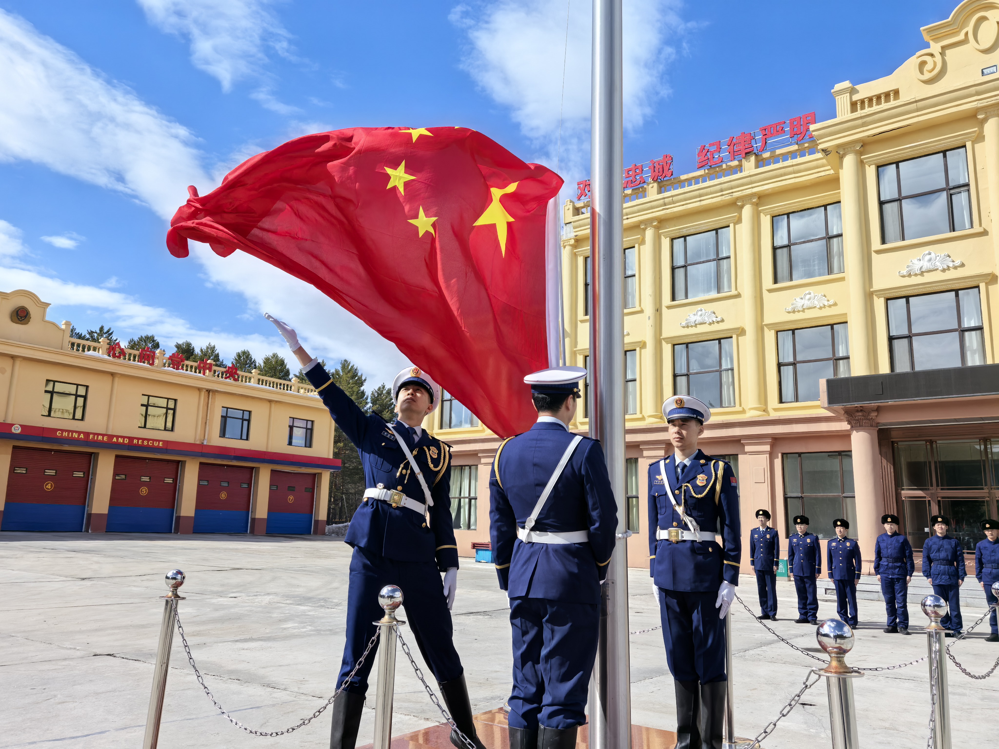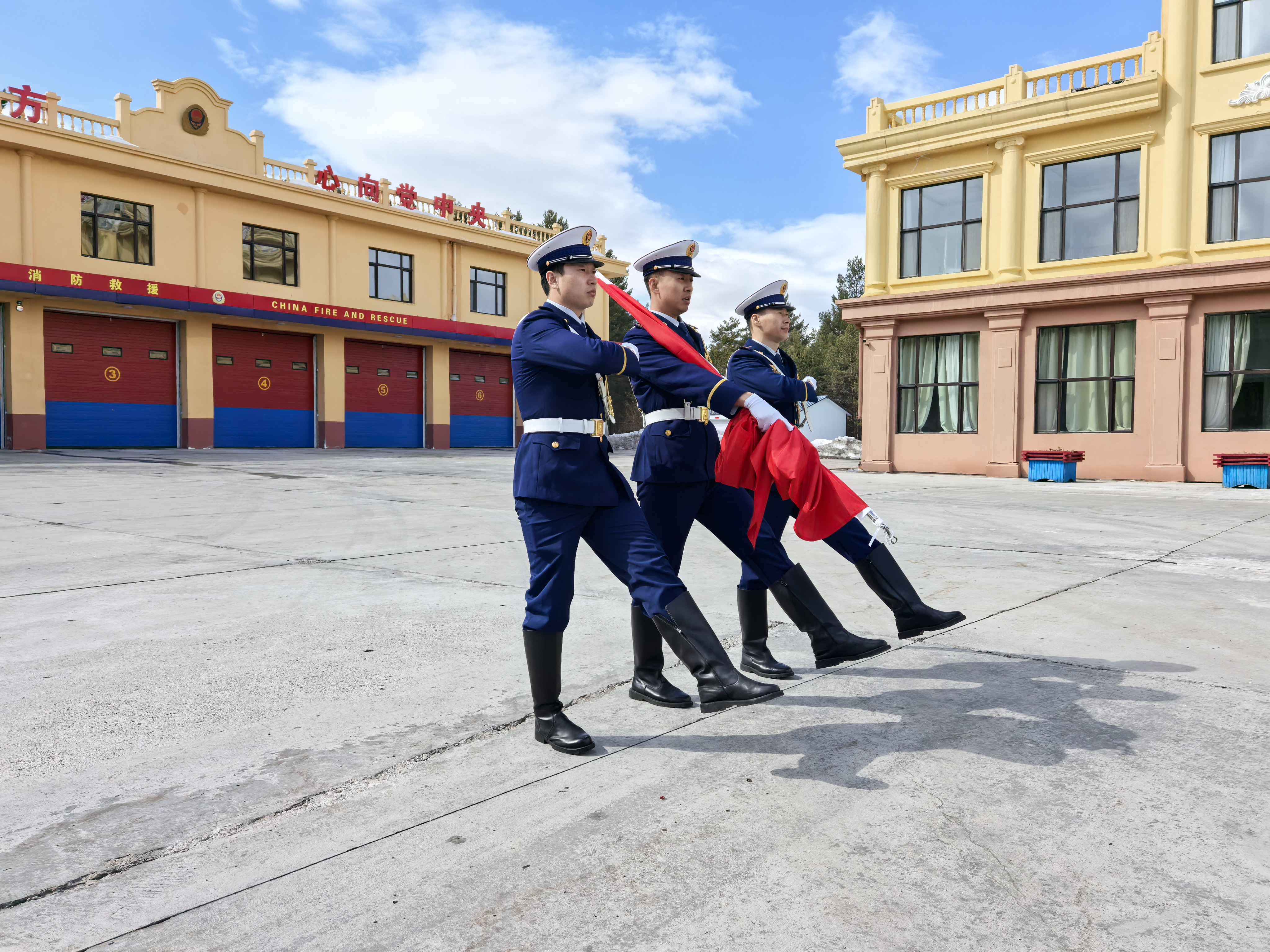 为教育引导新招录消防员忠实践行训词精神,增强队伍凝聚力和战斗力。北极消防救援站举行新消防员第一次升旗仪式。升旗仪式上,全体指战员及新招录消防员列队整齐、精神饱满,护旗手迈着铿锵有力的步伐护送五星红旗走到升旗台,伴随着庄严雄壮的国歌,五星红旗冉冉升起,全体人员面向五星红旗庄重敬礼。全体新消防员纷纷表示,要把这份热情转化为训练动力,以更加严格的标准要求自己。