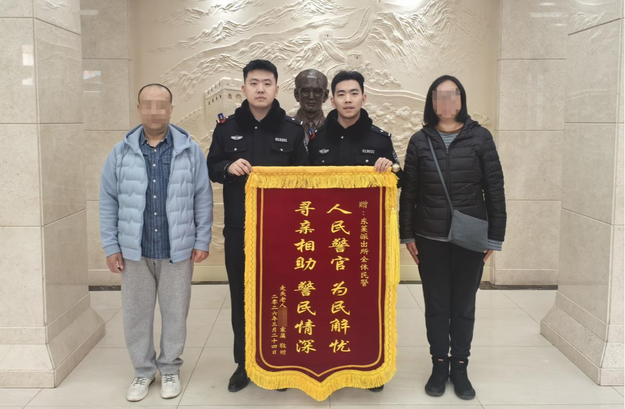 黑龙江网讯(记者 石岩松)“当时听到我父亲被你们找了回来,我们家里人悬着的心可算是放下了!太感谢东莱派出所的民警了!”3月27日8时许,哈尔滨市市民杨女士带着一面印有“人民警察 为民解忧 寻亲相助 警民情深”的锦旗来到哈尔滨市公安局道外分局东莱派出所,感谢民警吴泽、曲晨昊为自己找回走失的家人。