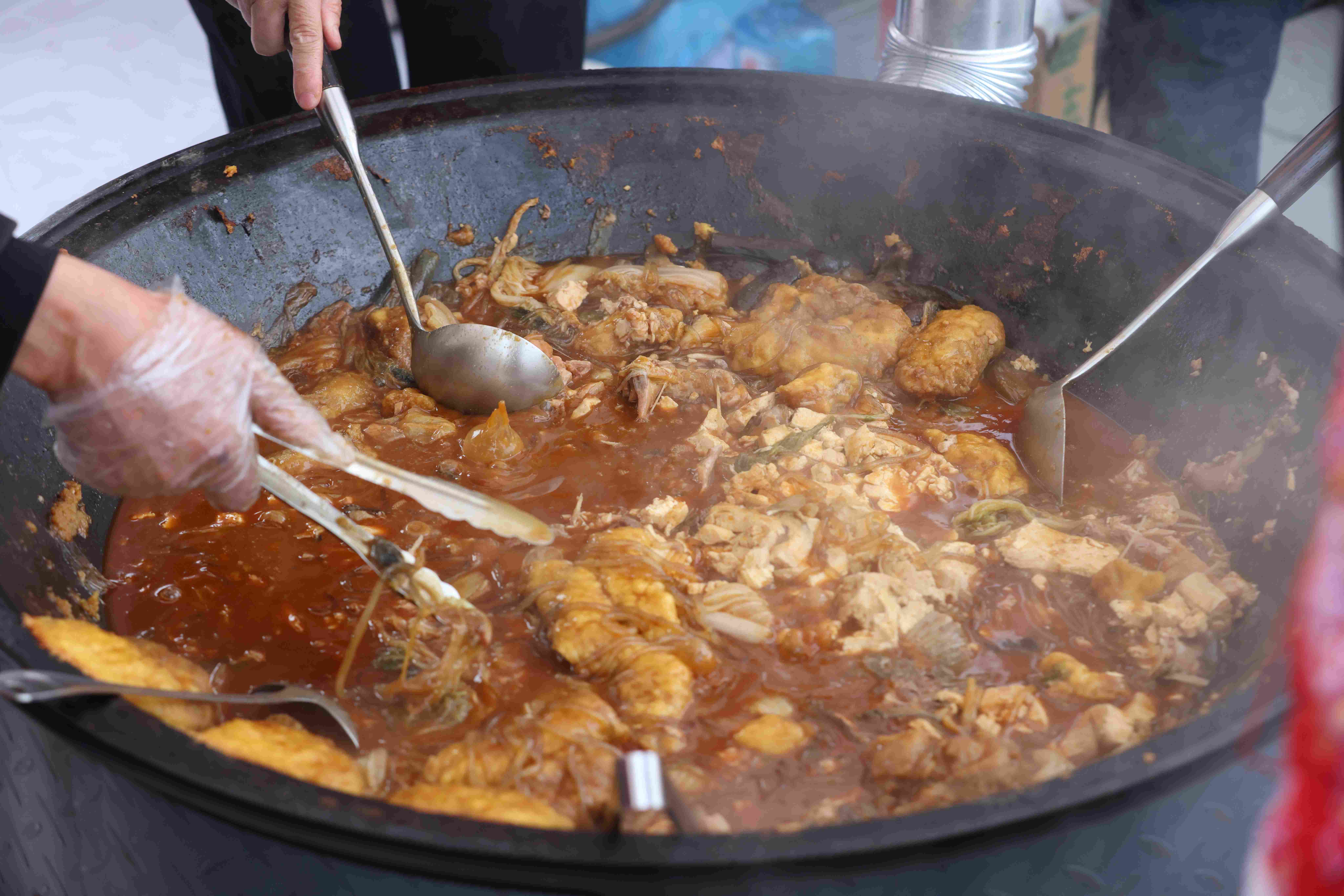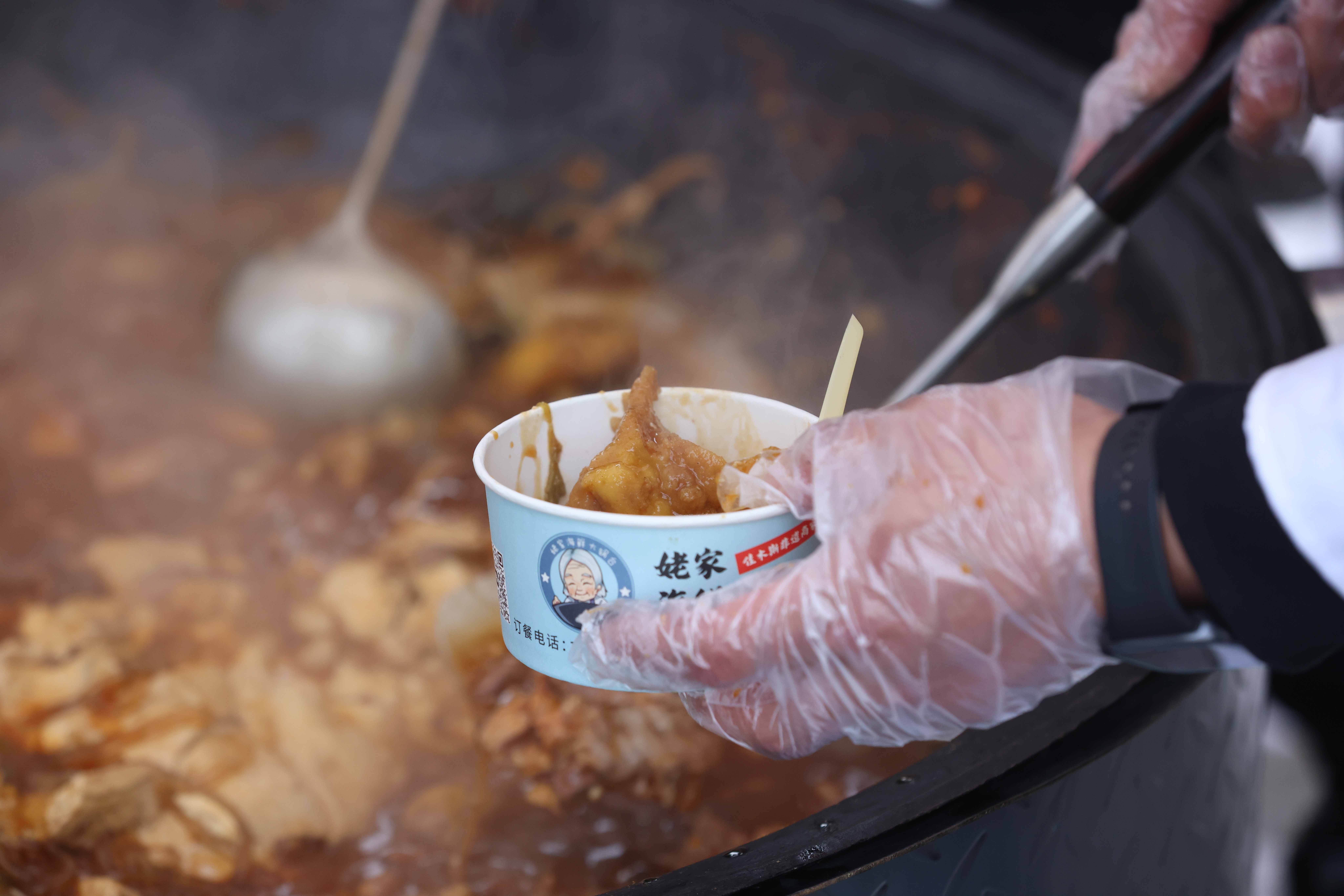 喊江祈福过后,开江文化的烟火气愈发浓郁。非遗展示区里,与鱼相关的文创产品和美食引来关注。一处美食摊位前排起长队,铁锅炖开江鱼的鲜香扑鼻而来,让人们在品尝美味的同时,感受开江时节的独特韵味 。“今天为了品尝鱼鲜,特地从家里带来米饭,这样的组合可以体验最原生态的风味。”来自哈尔滨的高淑杰高兴地说,“这几年都专程来佳木斯感受开江文化,一边和亲戚团聚,一边体验春日盛会。”