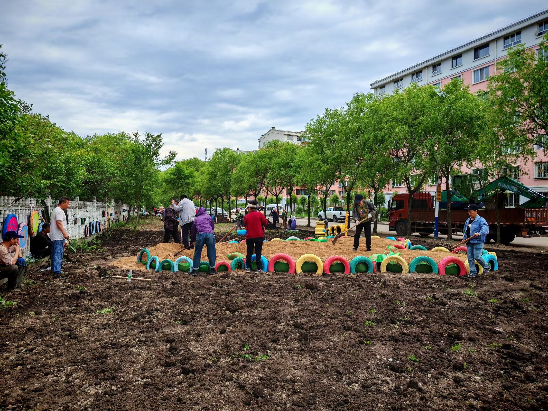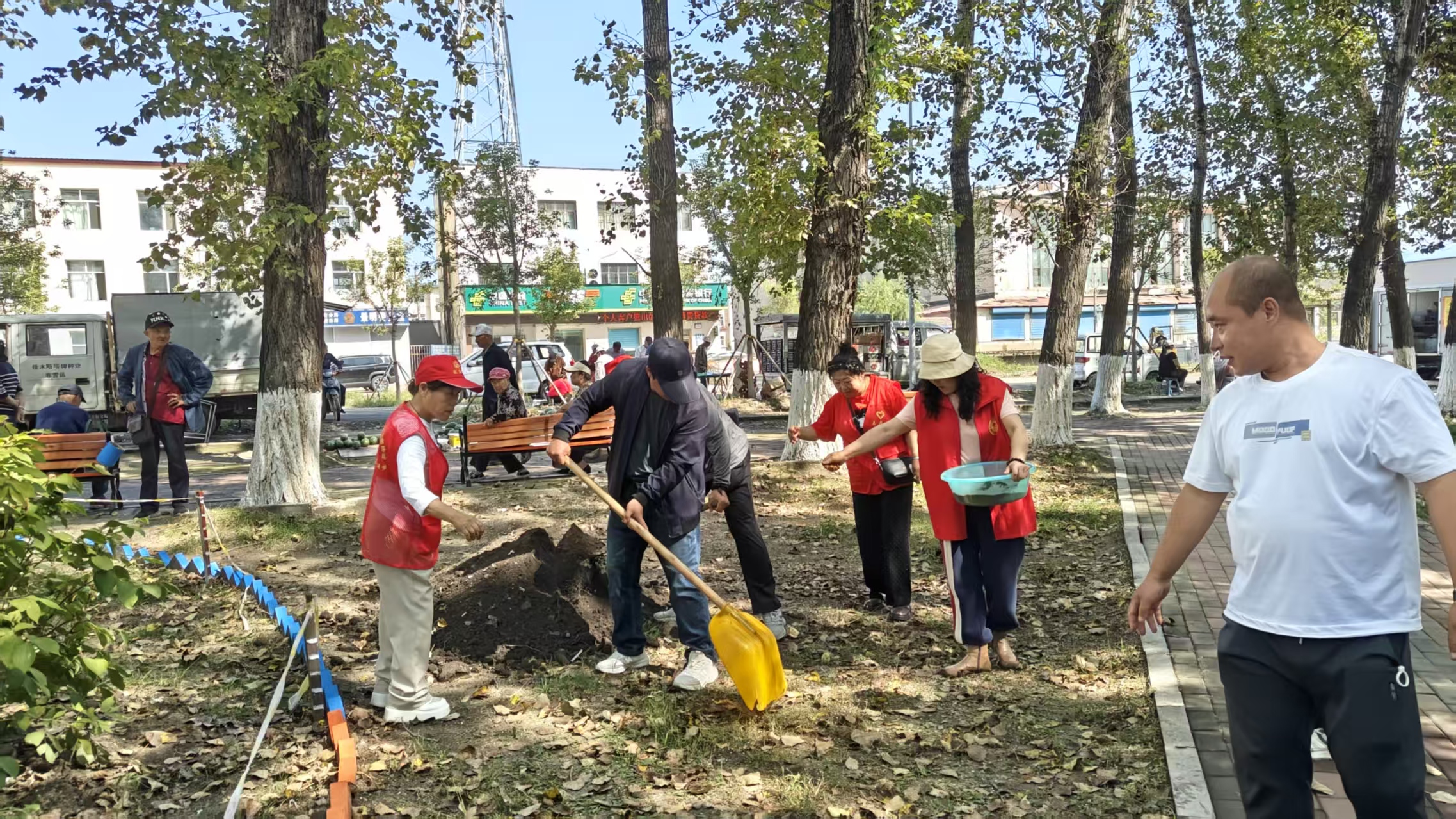 鹤岗市兴安区党员干部、社区志愿者和辖区居民在兴安区兴安路街道办事处峻昌社区“峻徳记忆主题公园”共同打造共享花园,营造舒适宜居的生活环境。