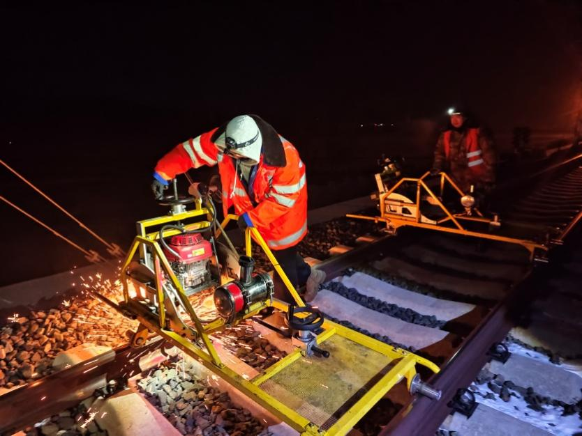 作业人员利用打磨机打磨钢轨 张祝海 摄