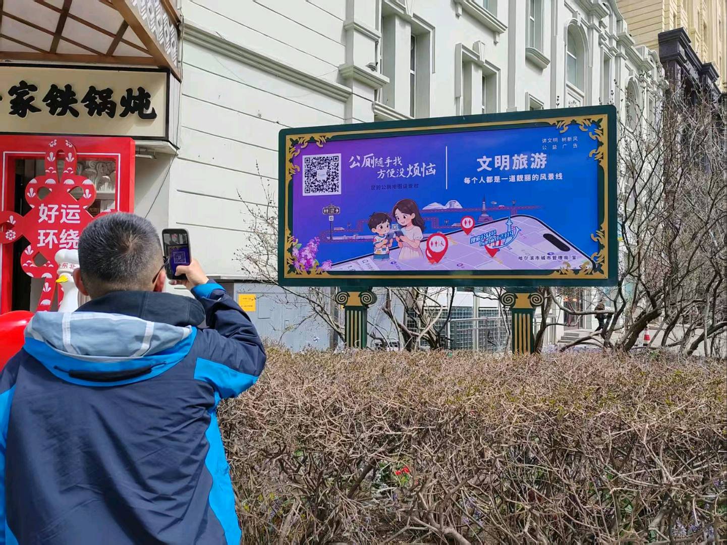 目前,哈尔滨市数字城管保障中心,已经在中央大街和中华巴洛克等景区设置公厕导航二维码,公众只需要扫码就能实现实时导航找厕,未来哈市城管部门将在更多点位设置此类二维码,除了扫码,市民游客也可直接关注哈尔滨市数字城管保障中心微信公众号,直接使用城管便民地图找厕功能。