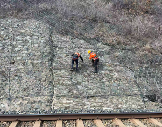 刘纯刚所在的工区负责城鸡线14公里至95公里范围内12处重点山头的检查清理任务。每年,他们都要对这些山头进行多轮“地毯式”搜山扫石,及时处理山体岩石剥落、开裂等隐患,检查并维护边坡柔性防护网,清理网内脱落的石块和灌木。