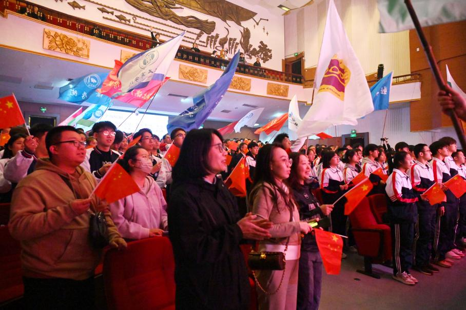 在场师生齐声高唱《歌唱祖国》