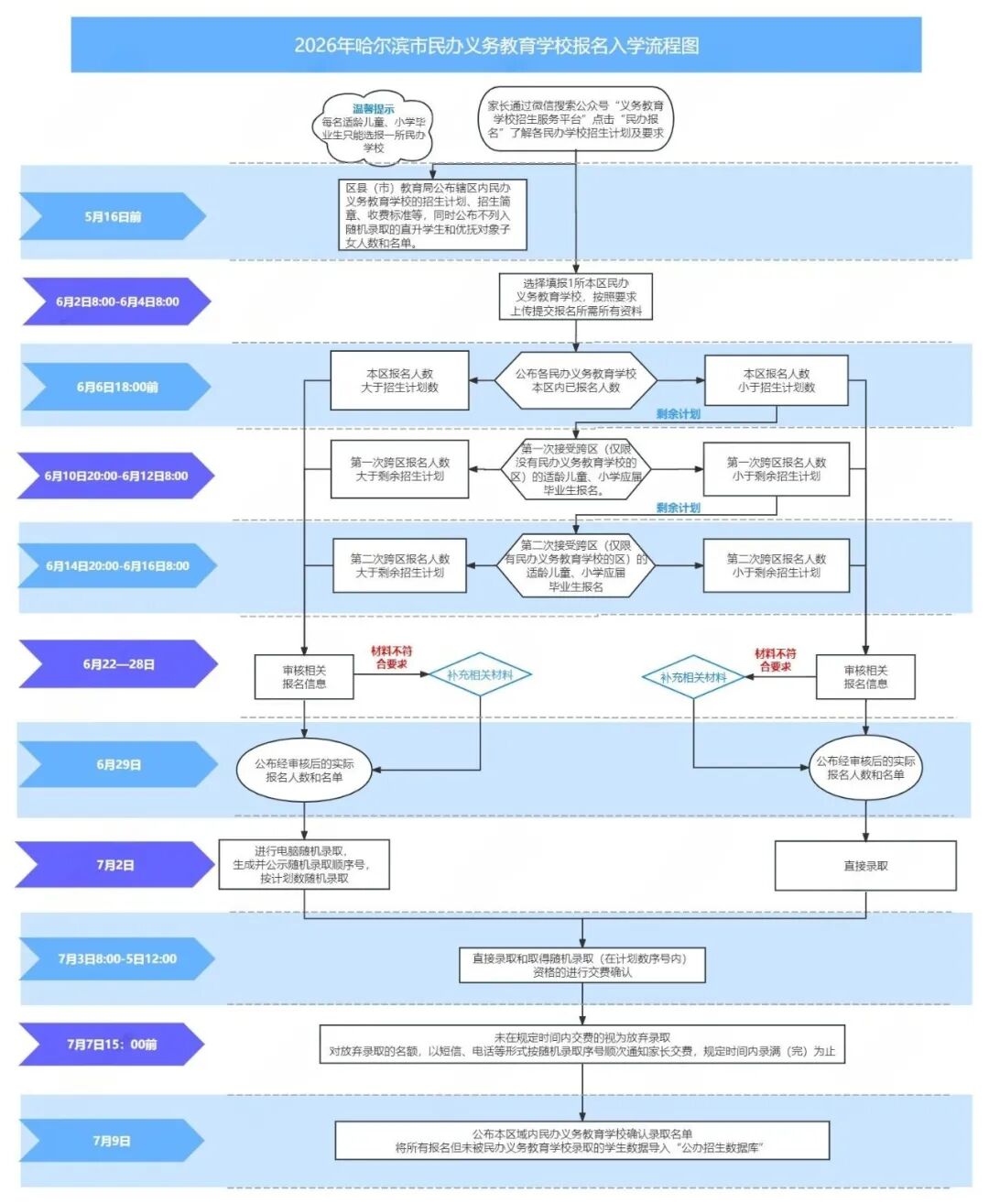28.2026年哈尔滨市民办义务教育学校报名和录取时间是怎样安排的?